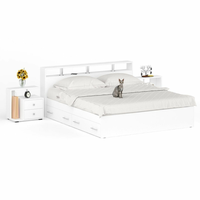 Кровать с ящиками 1800 Камелия с двумя прикроватными тумбами - островок безмятежного отдыха!
