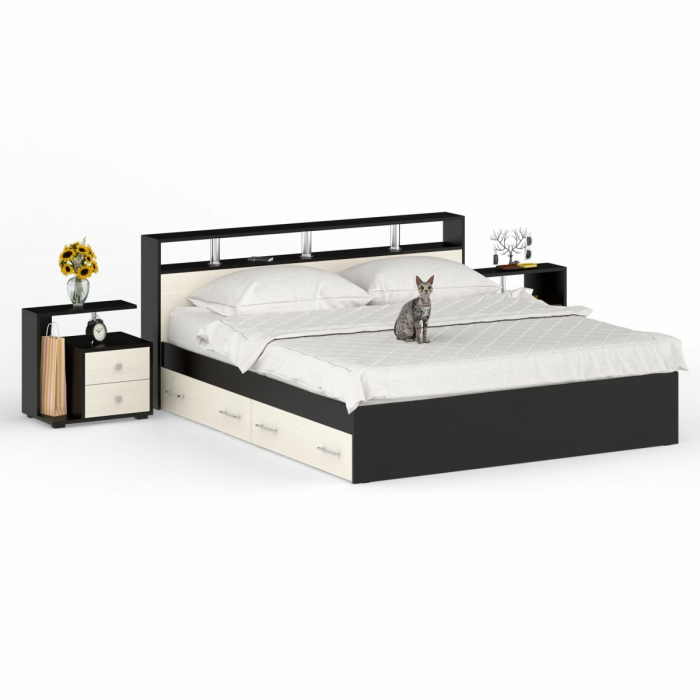 Кровать с ящиками 1800 Камелия с двумя прикроватными тумбами - островок безмятежного отдыха!