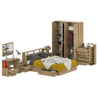 Спальня состоит из кровати с ящиками 1600, двух тумб, стола косметического с зеркалом, комода и шкафа 4-х створчатого. Удобная кровать с трёхсторонним доступом к спальному месту размером 1600х2000 мм. - стильный подиум для комфортного отдыха. В основании кровати расположены два вместительных ящика для хранения постельных принадлежностей и личных вещей. Предусмотрена универсальная схема сборки бельевых ящиков - они могут быть установлены с правой или с левой стороны кровати. Основание под матрас в комплекте (настил ДСП), матрас приобретается отдельно. Комплект из двух прикроватных тумб Камелия в правом и левом исполнении - креативный подход к оформлению зоны отдыха. Компактный столик, глубиной всего 40 см., с двумя выдвижными ящиками, открытой нишей и удобной столешницей на хромированной стойке. Ящики и стойка расположены с левой стороны стола. Универсальная сборка не предусмотрена. Большое, нарядное зеркало повысит уровень комфорта в спальне, оживит интерьер магией блеска и света.