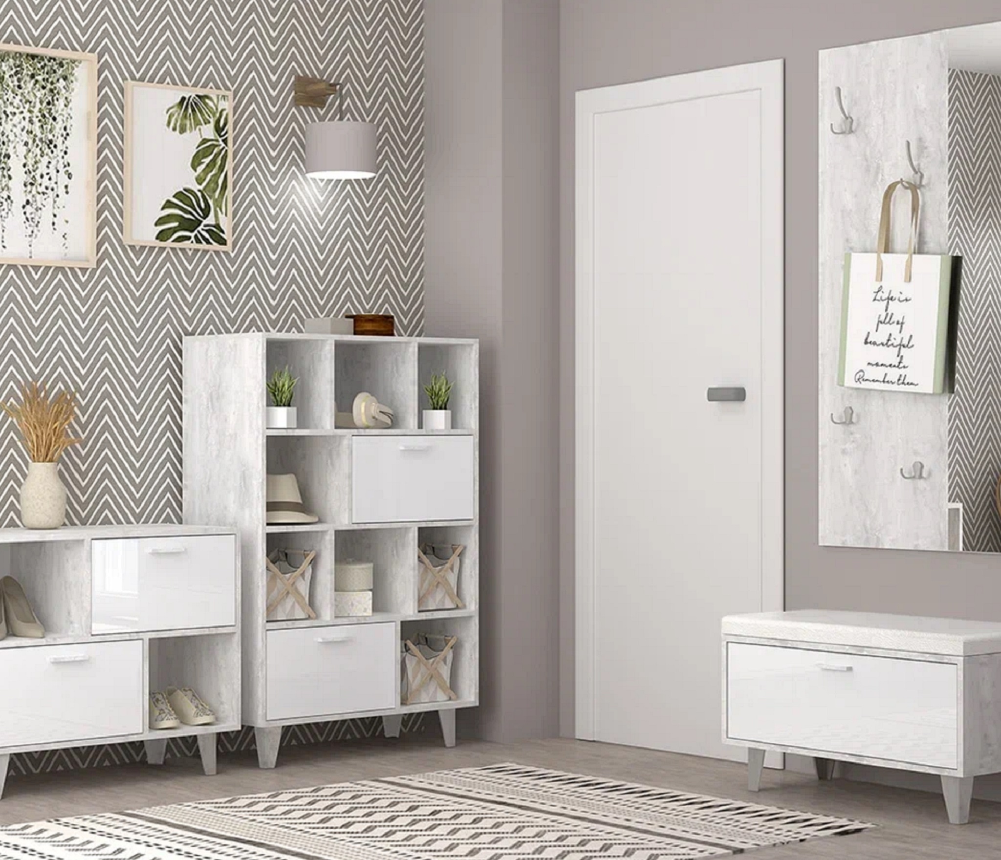 Модульные системы - блестящий выход из положения. Выбрав нужное количество модулей, к примеру, открытую настенную вешалку, тумбу под обувь и зеркало, вы создадите стильный, уютный, гармоничный интерьер даже на небольшом пространстве, который будет радовать вас долгое время.