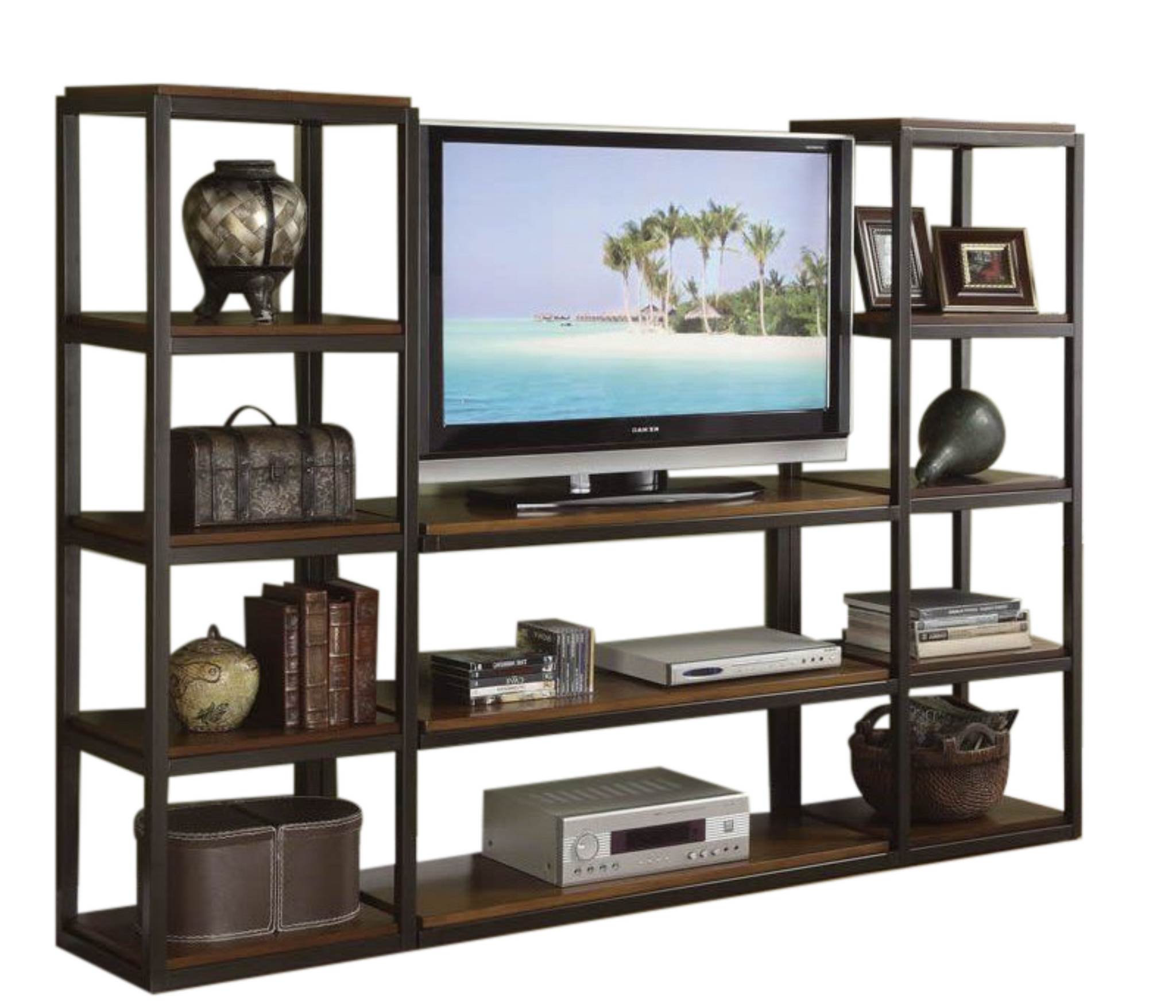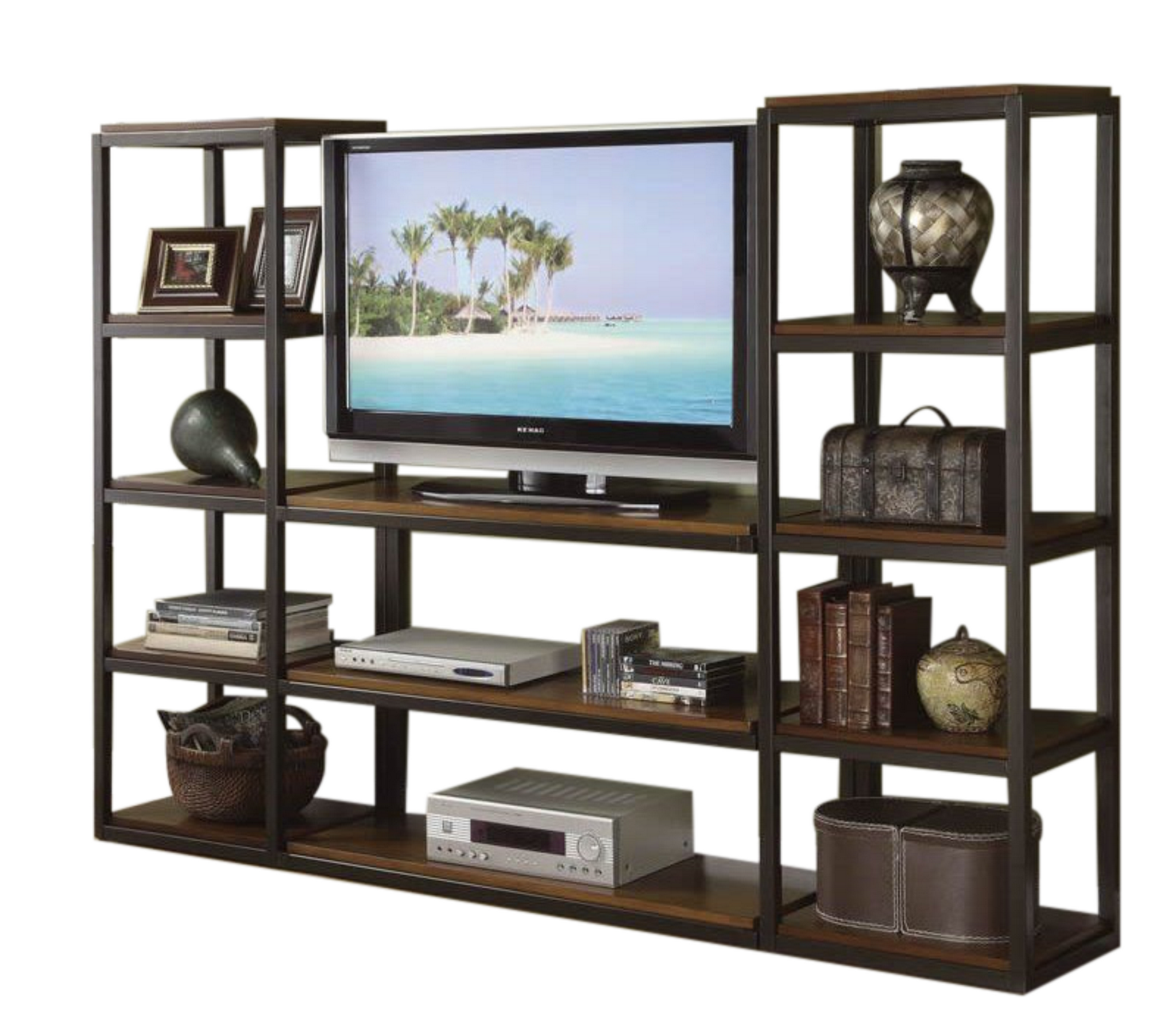 С ТВ тумбой , со стеллажом, глянцевые фасады, С полками
