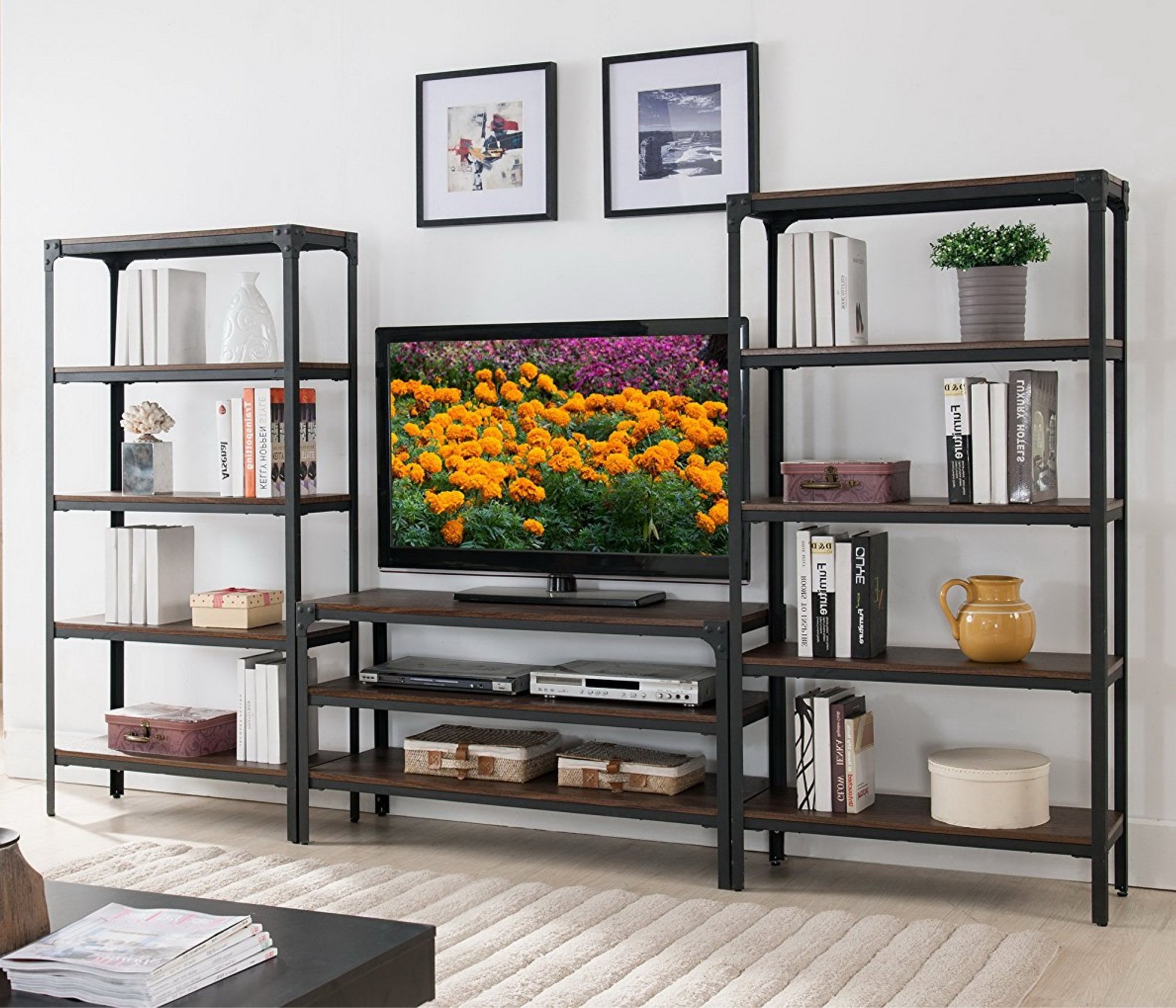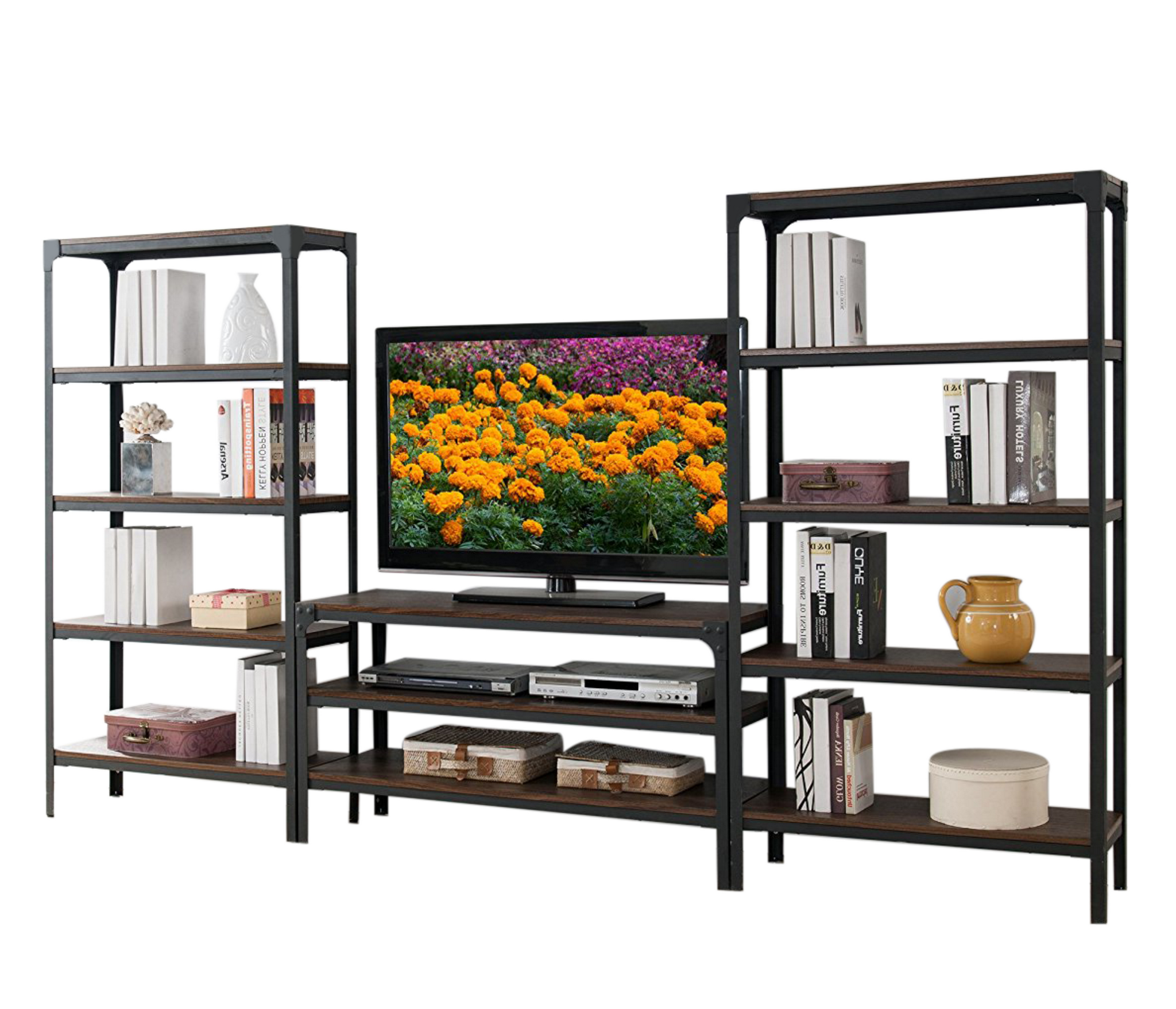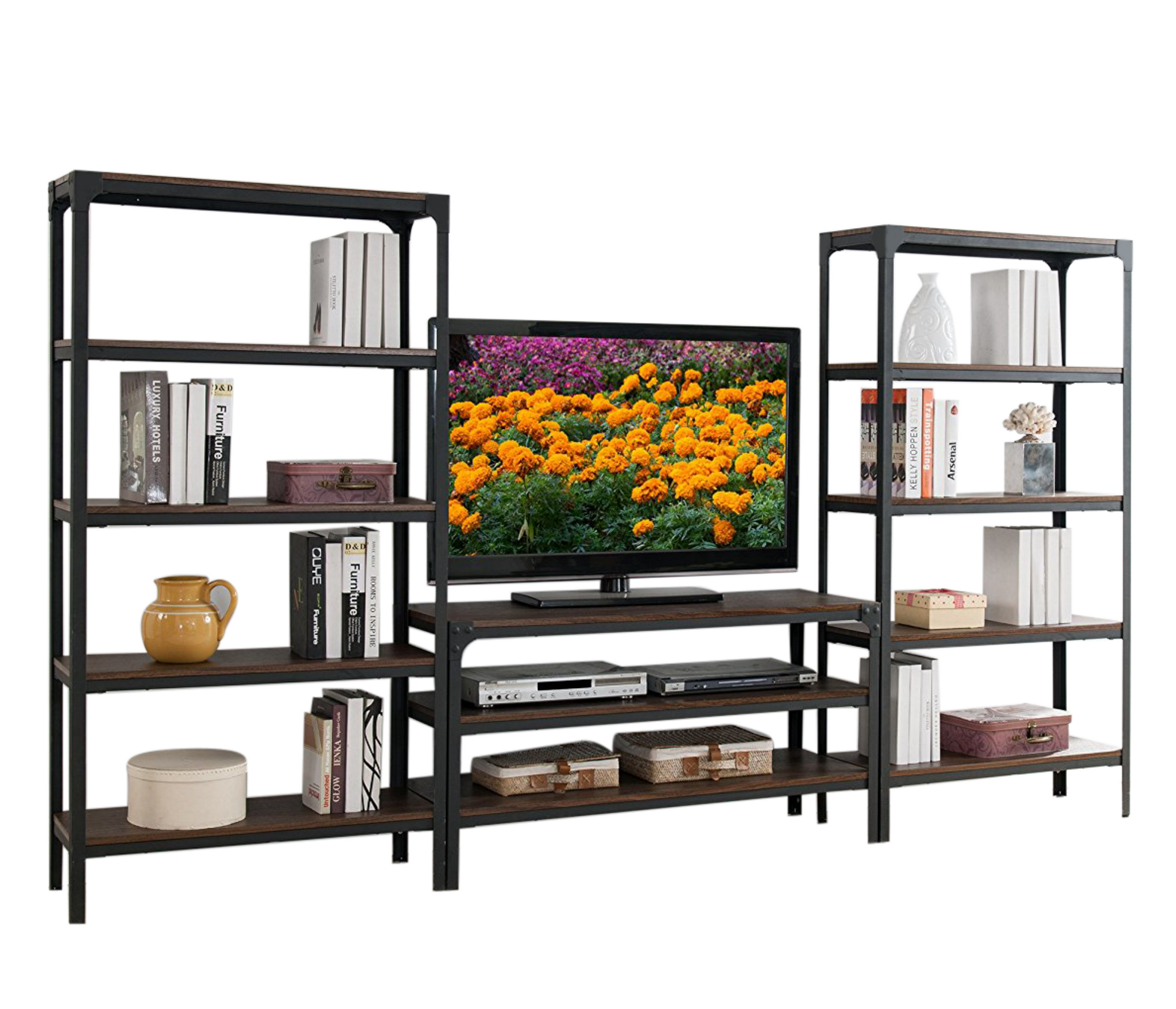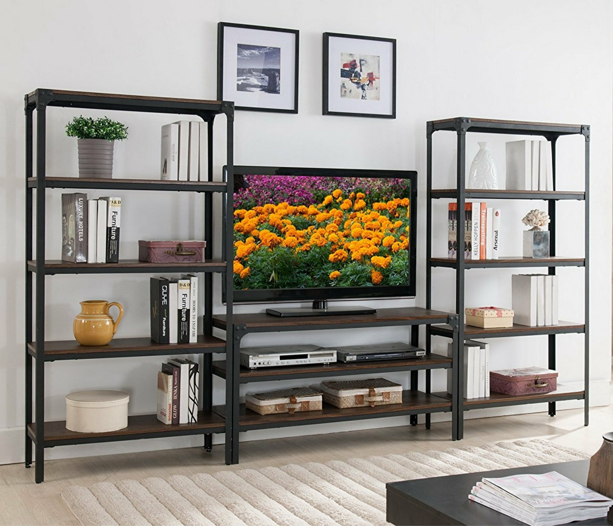 С ТВ тумбой , со стеллажом, глянцевые фасады, С полками