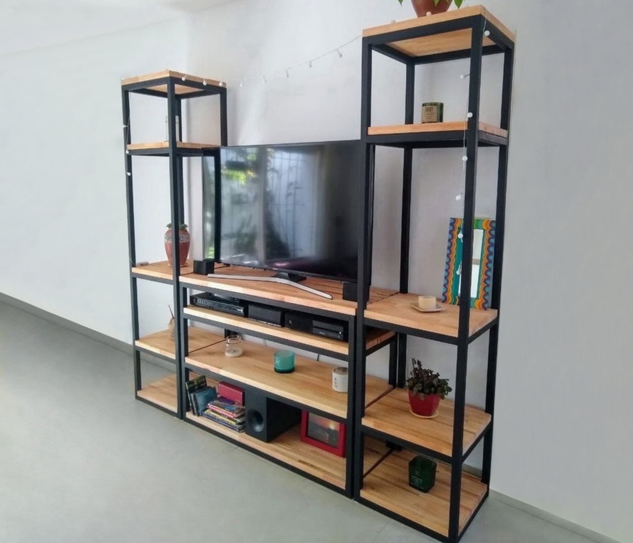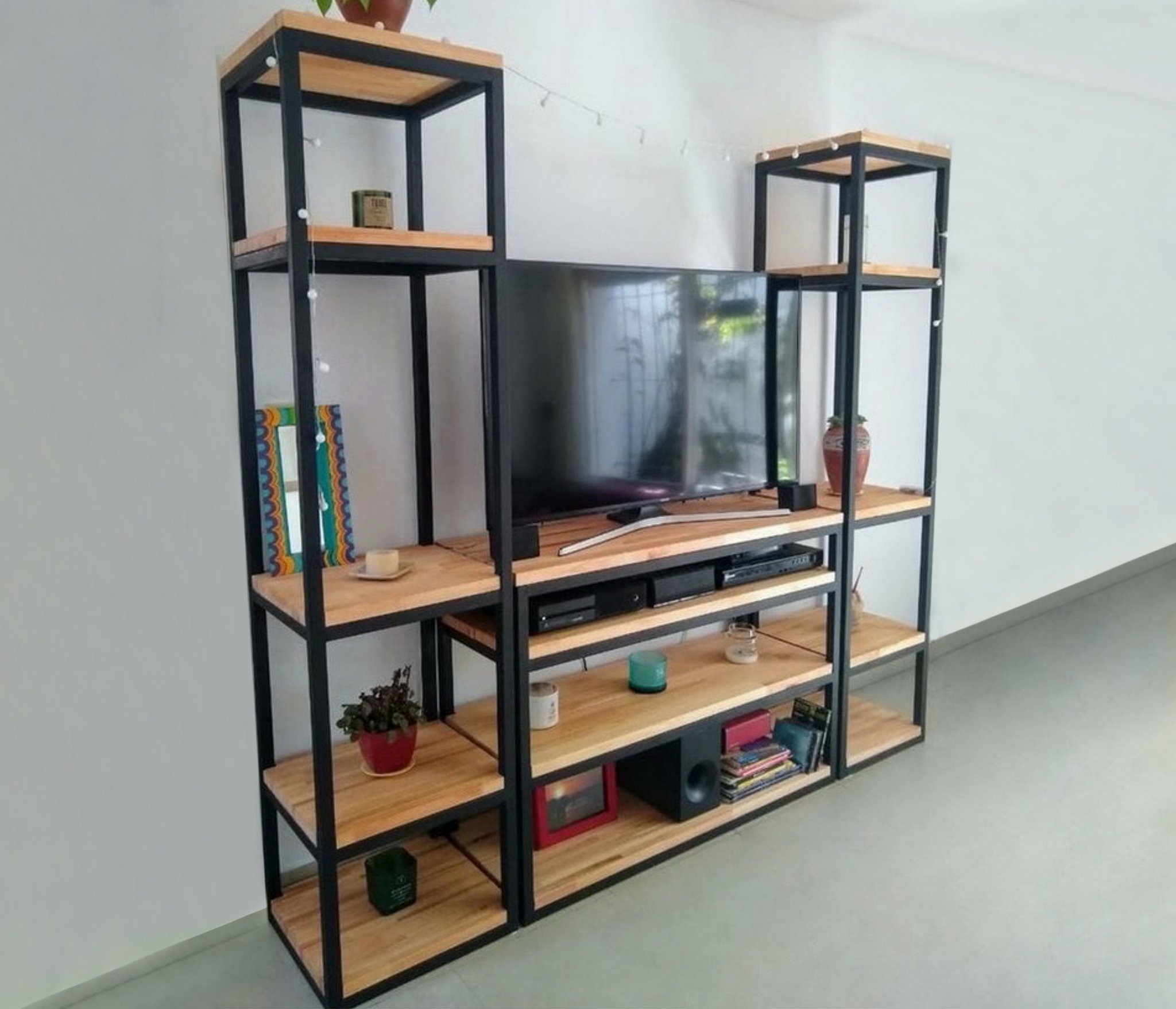 С ТВ тумбой , со стеллажом, глянцевые фасады, С полками