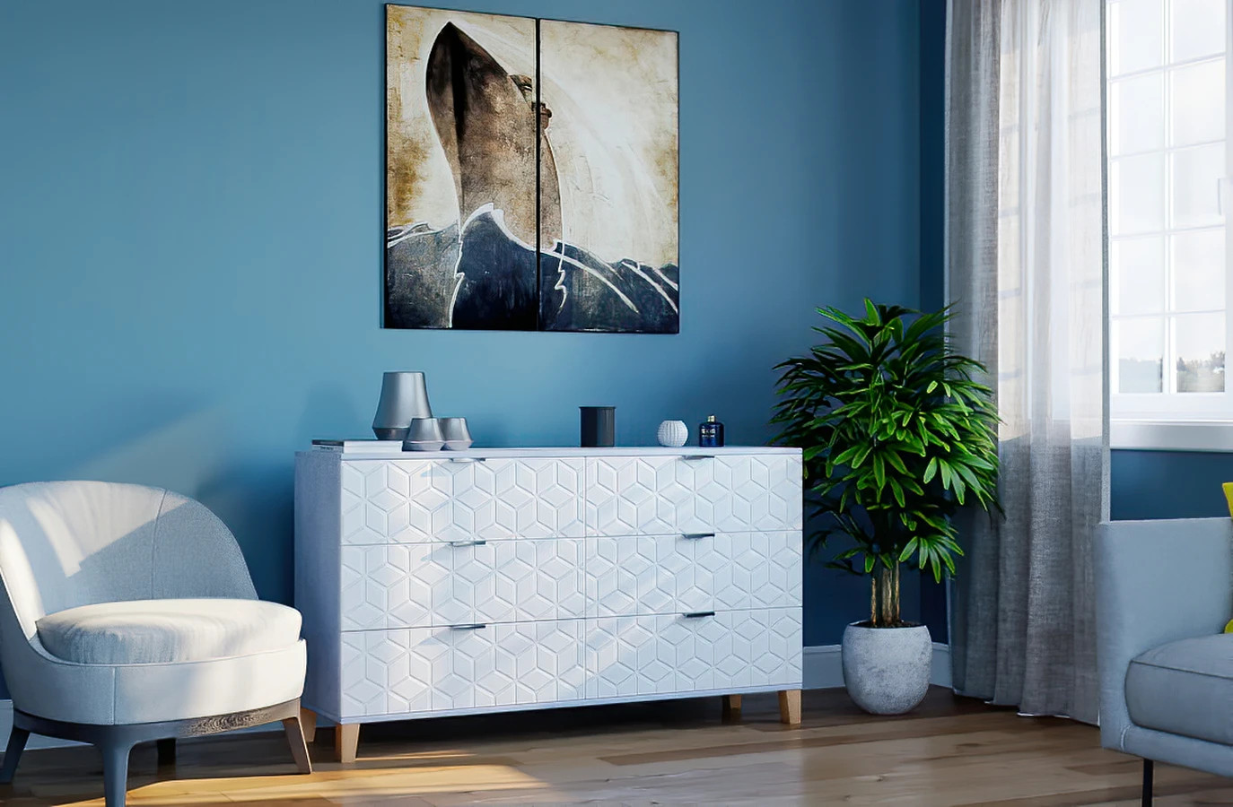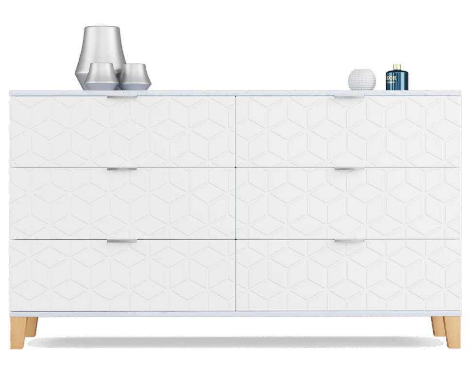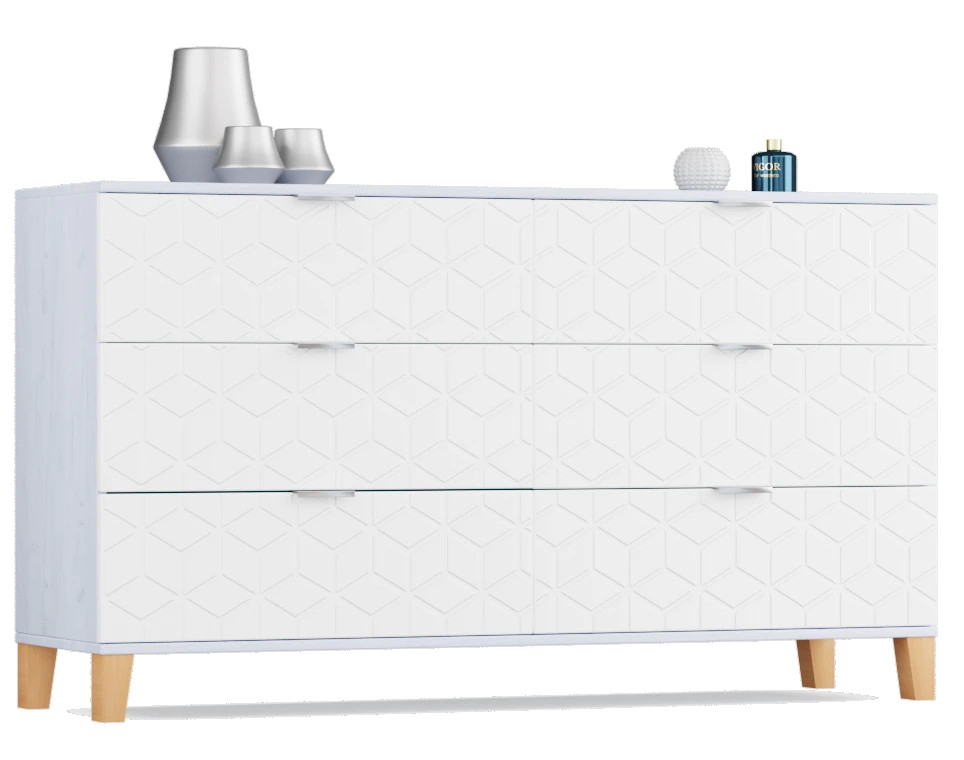 Комоды Марвин, выполненные в скандинавском стиле, органично дополнят интерьер любой комнаты. Геометрическая фрезеровка на фасадах, сочетание цветов - отличительная черта серии комодов Марвин.