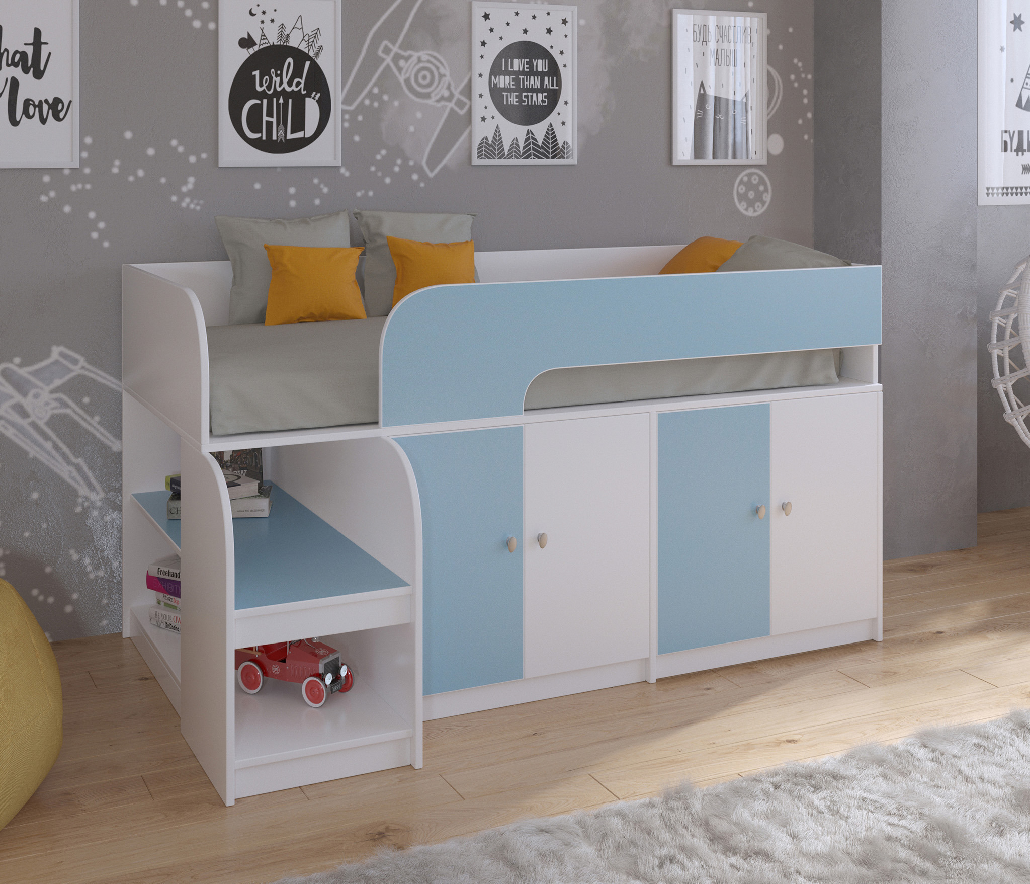 Кровать-чердак Астра 9 V2 Белый (Голубой)