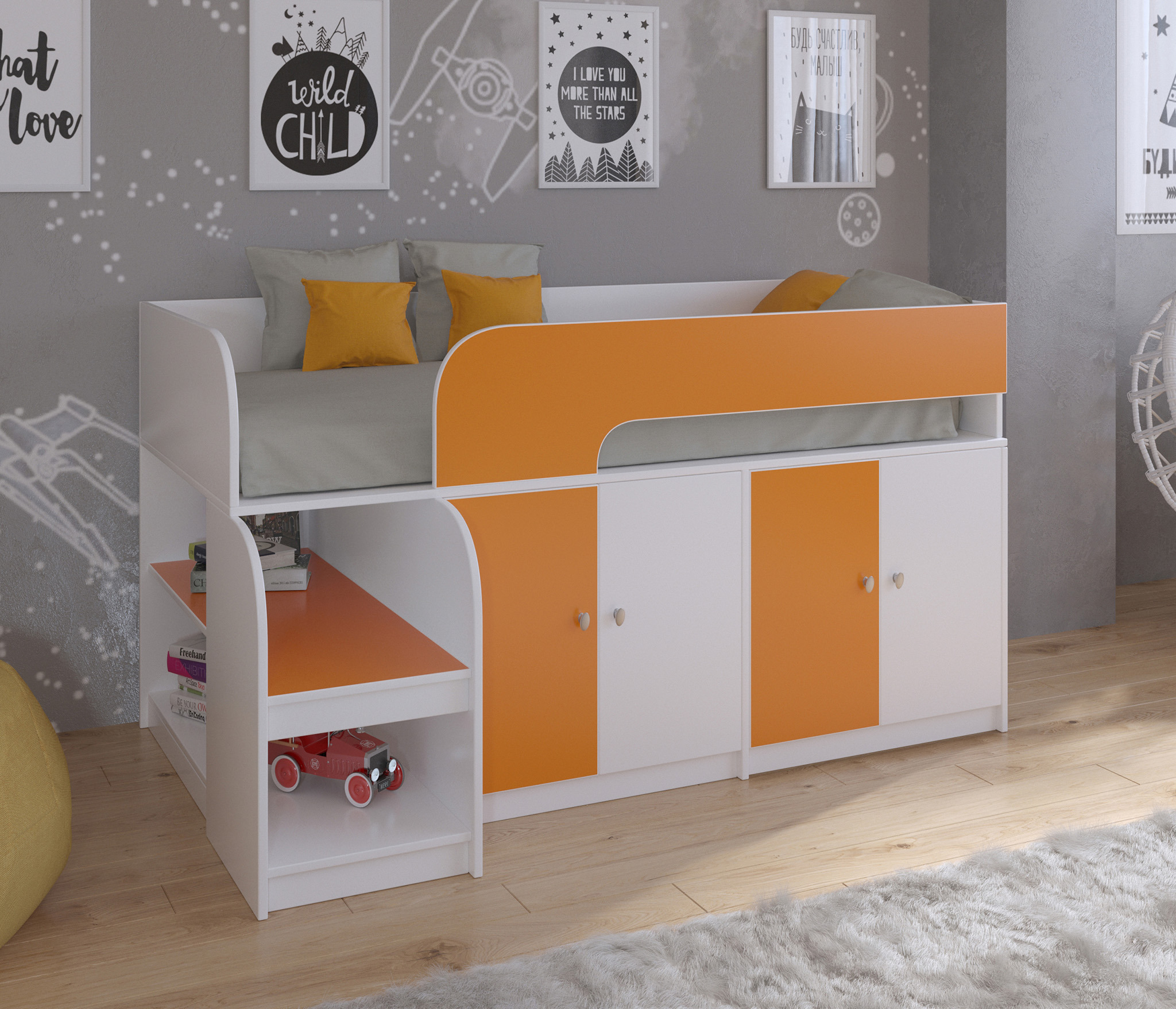 Кровать-чердак Астра 9 V2 Белый (Оранжевый)