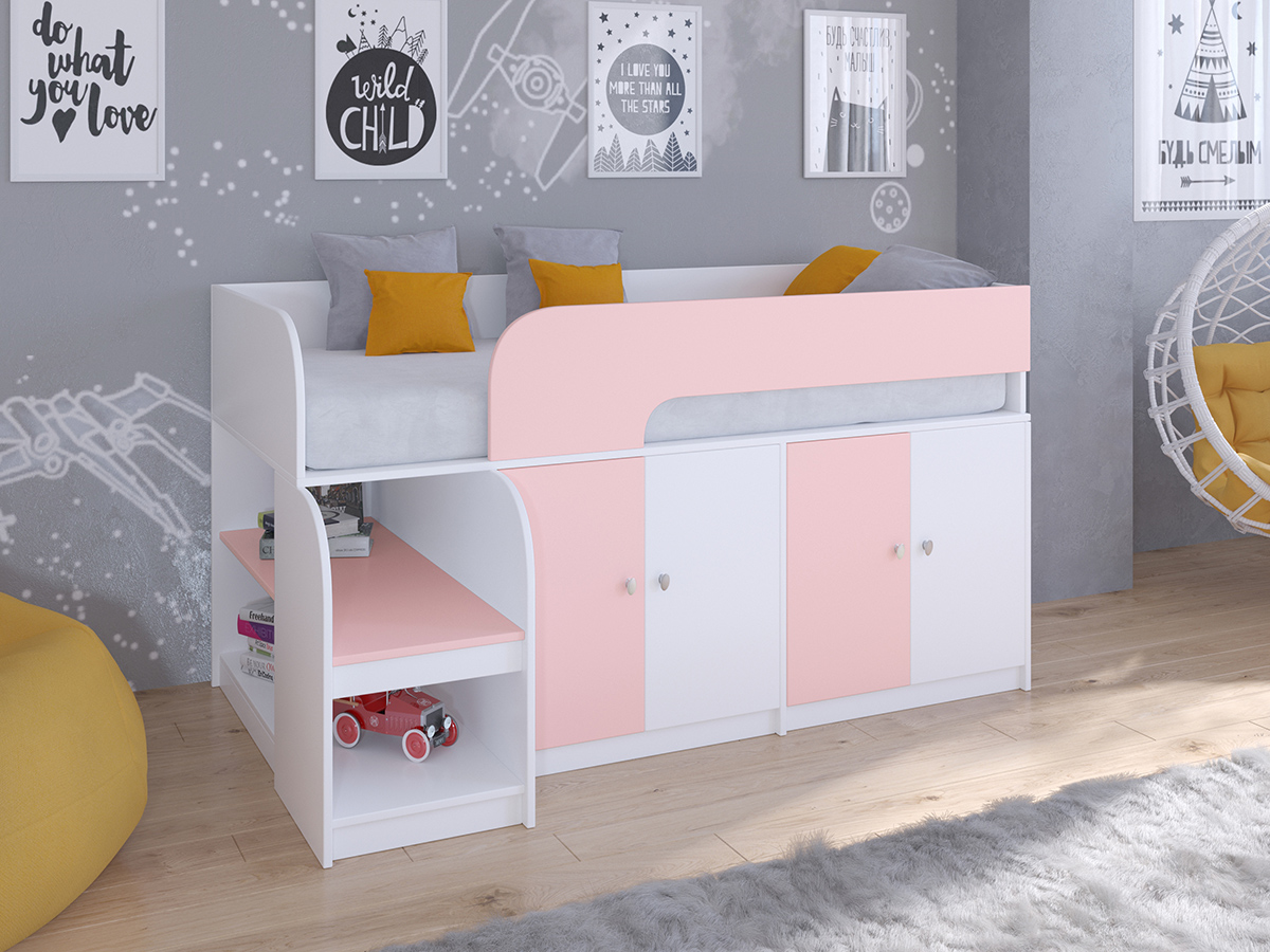 Кровать-чердак Астра 9 V2 Белый (Розовый)