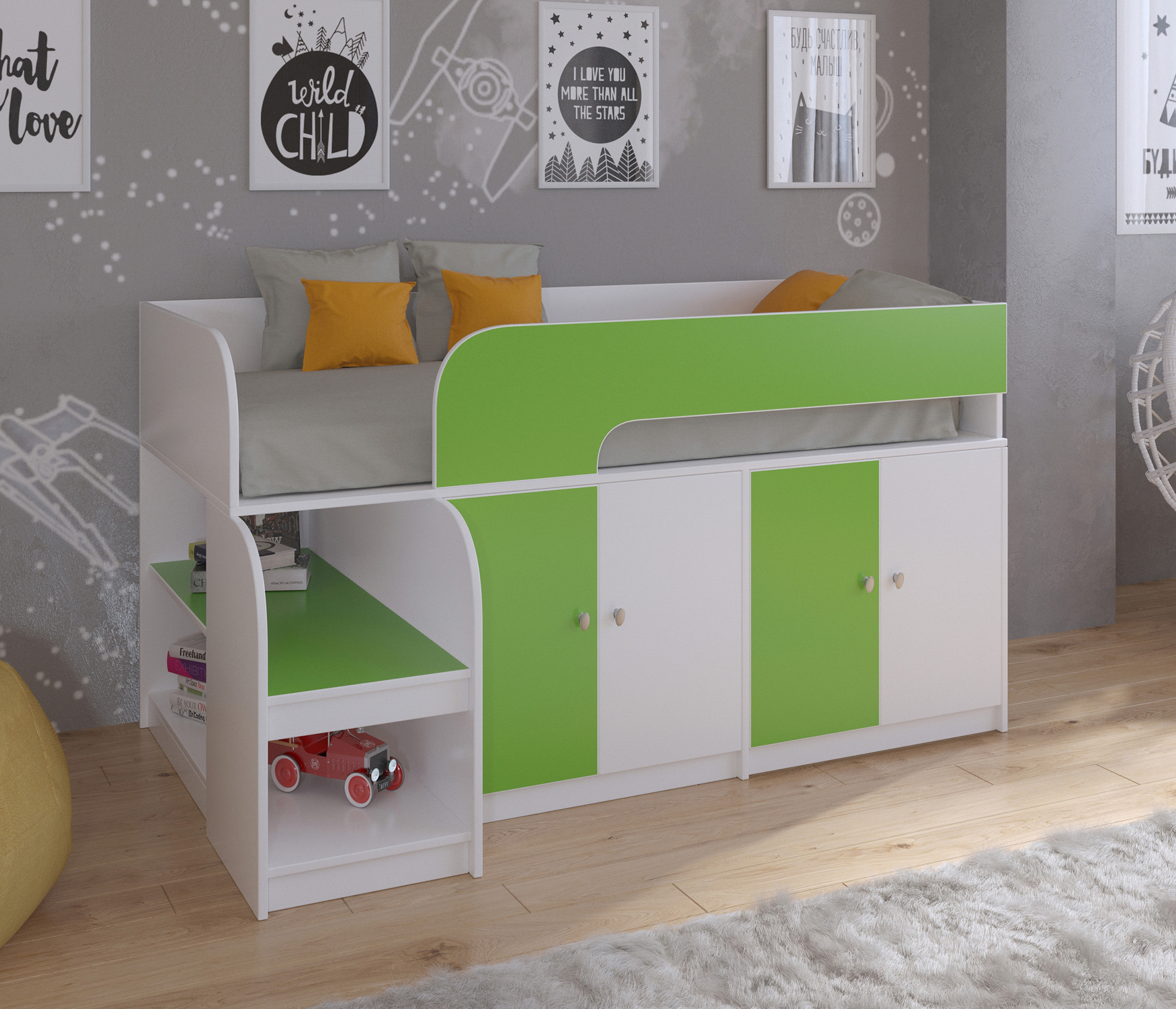 Кровать-чердак Астра 9 V2 Белый (Салатовый)