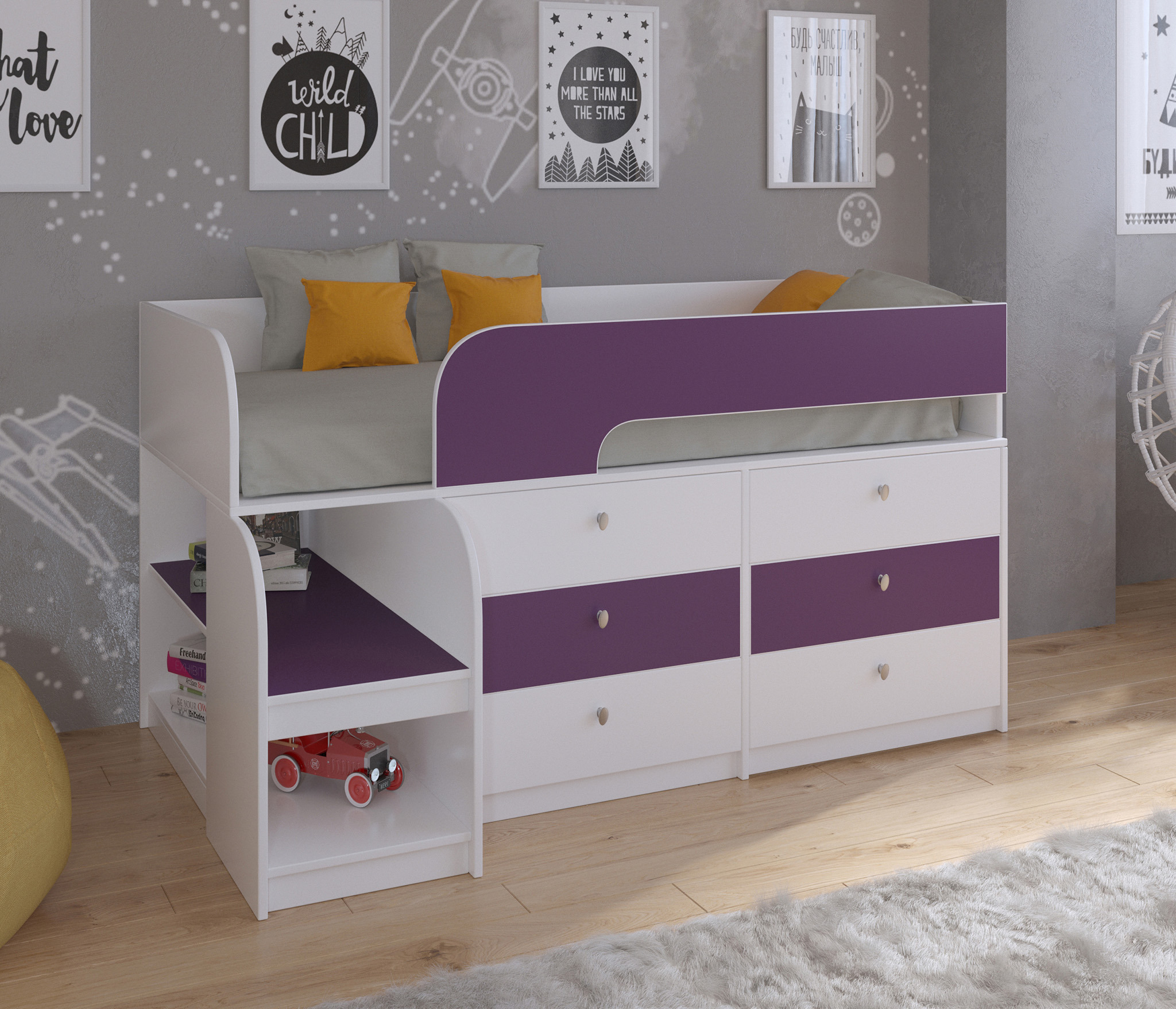 Отзывы о Столплит Кровать-чердак Астра 9 V3 Белый Фиолетовый
