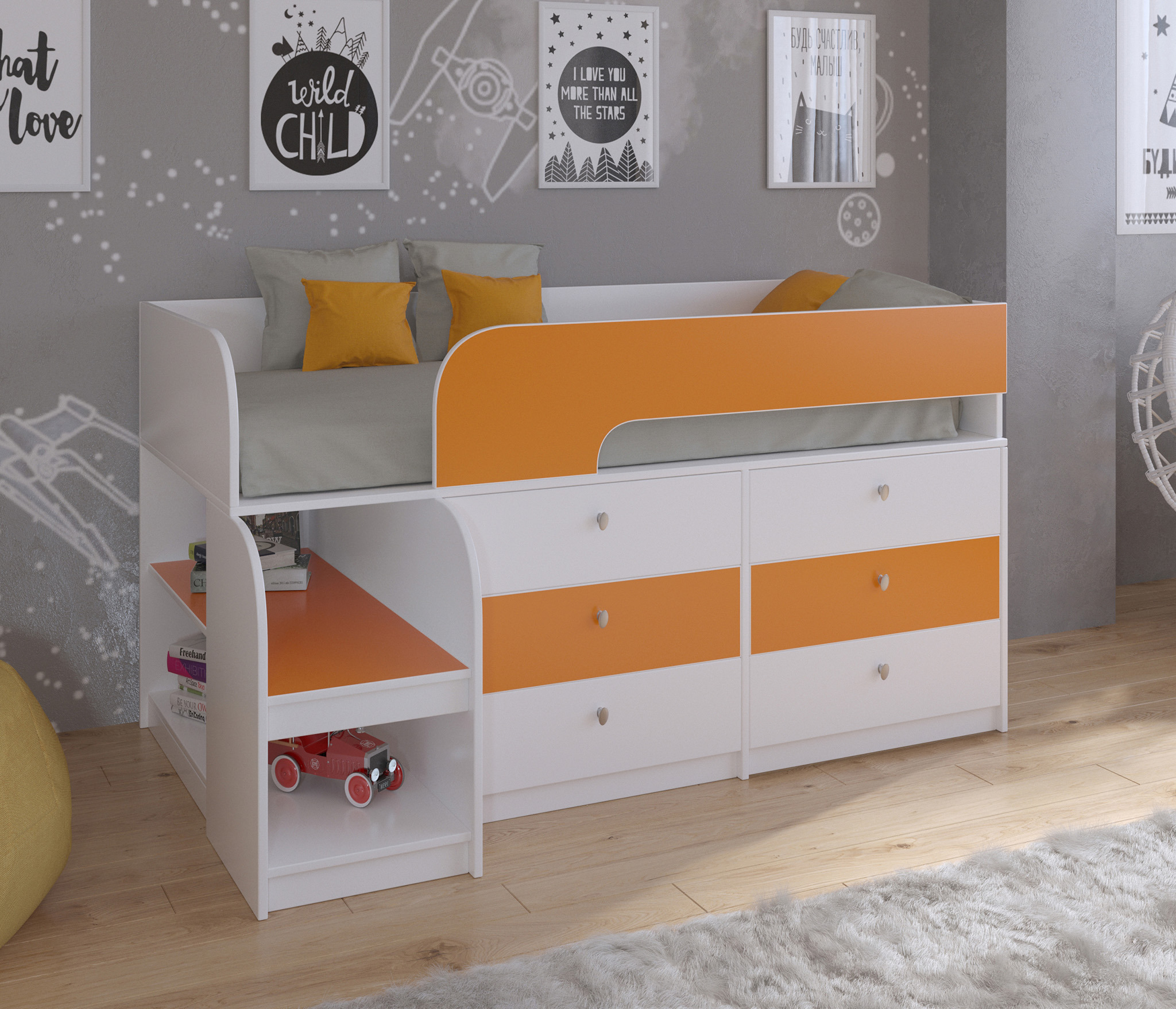Кровать-чердак Астра 9 V3 Белый (Оранжевый)