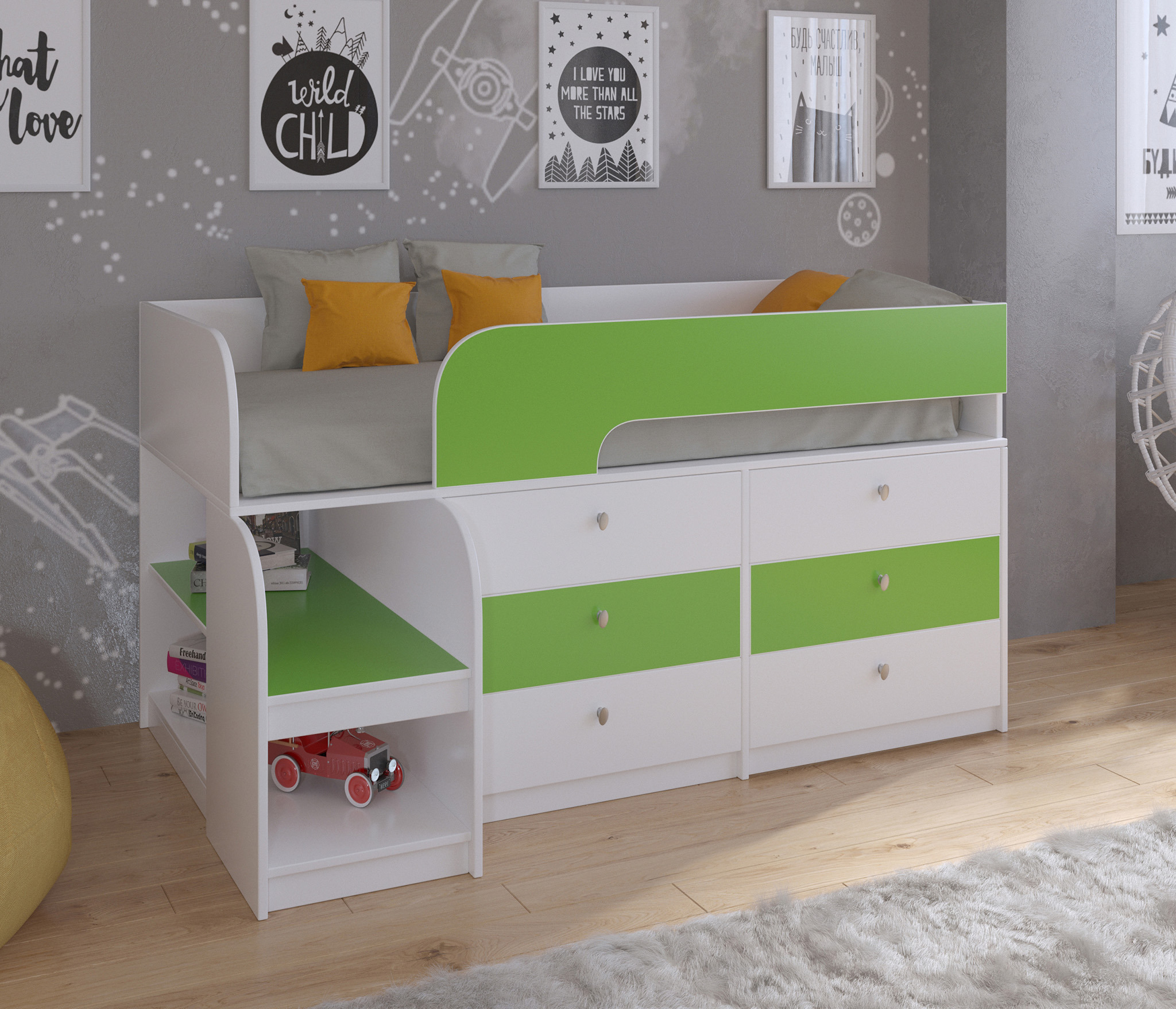 Кровать-чердак Астра 9 V3 Белый (Салатовый)