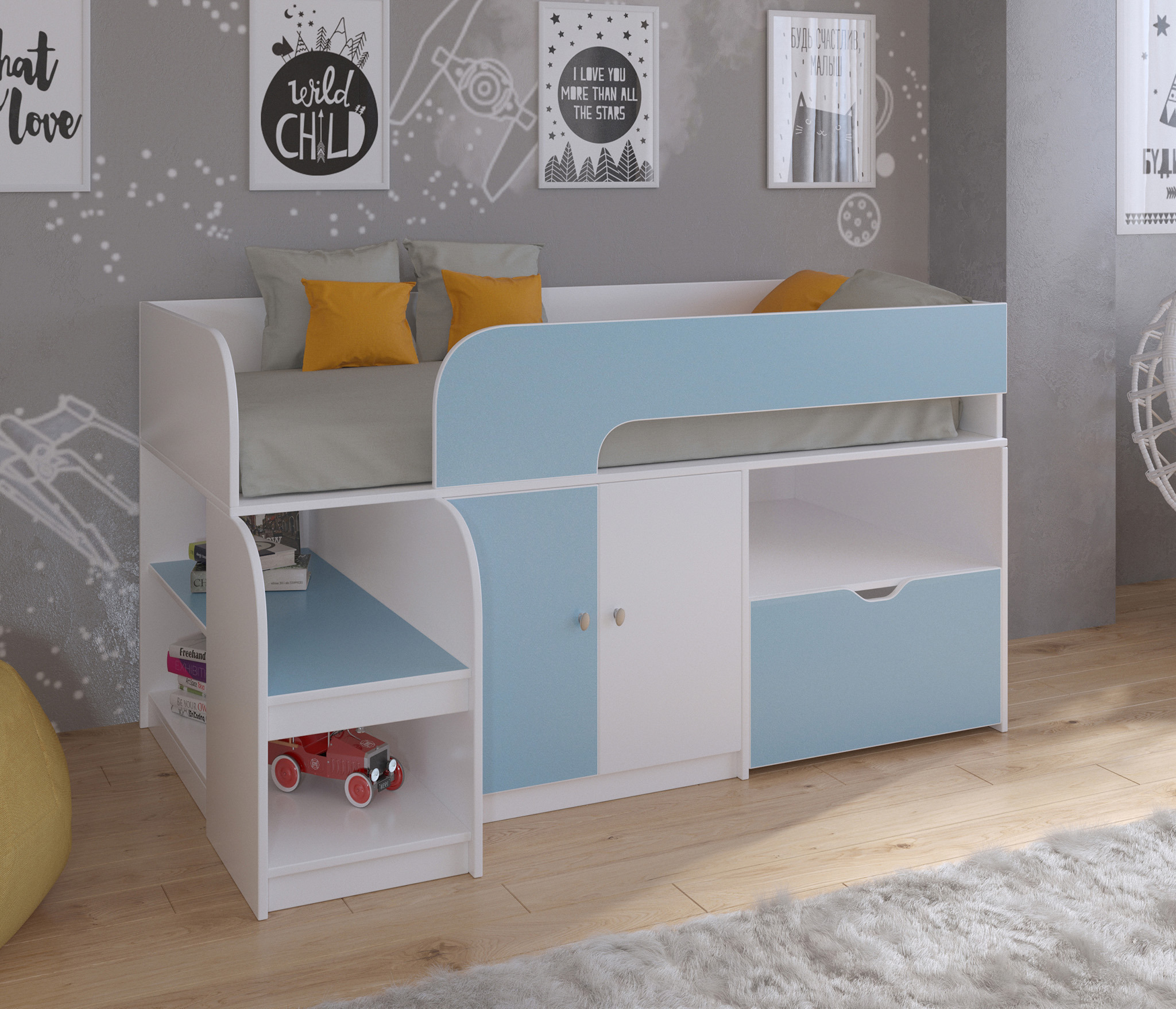 Кровать-чердак Астра 9 V4 Белый (Голубой)