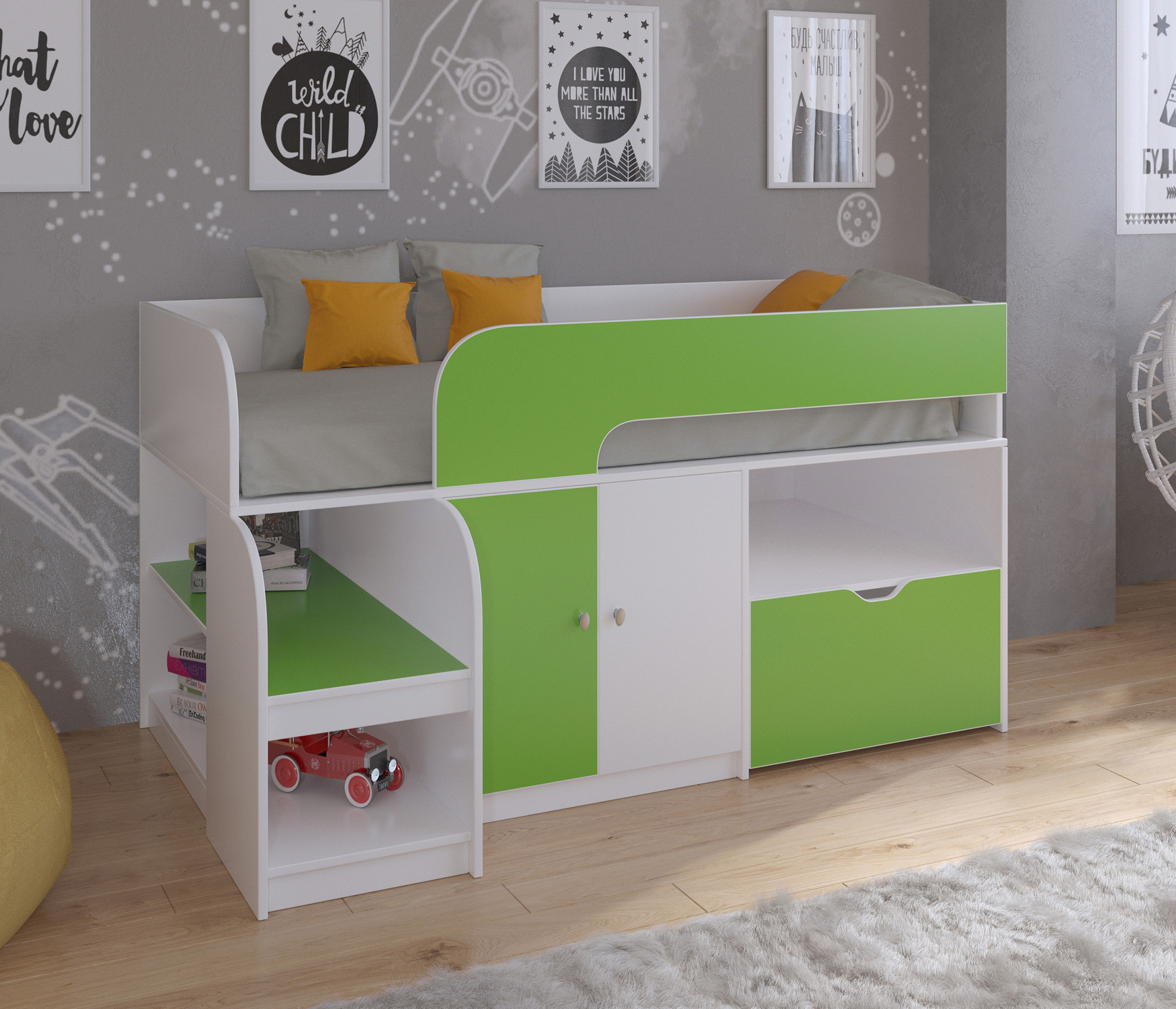 Кровать-чердак Астра 9 V4 Белый (Салатовый)
