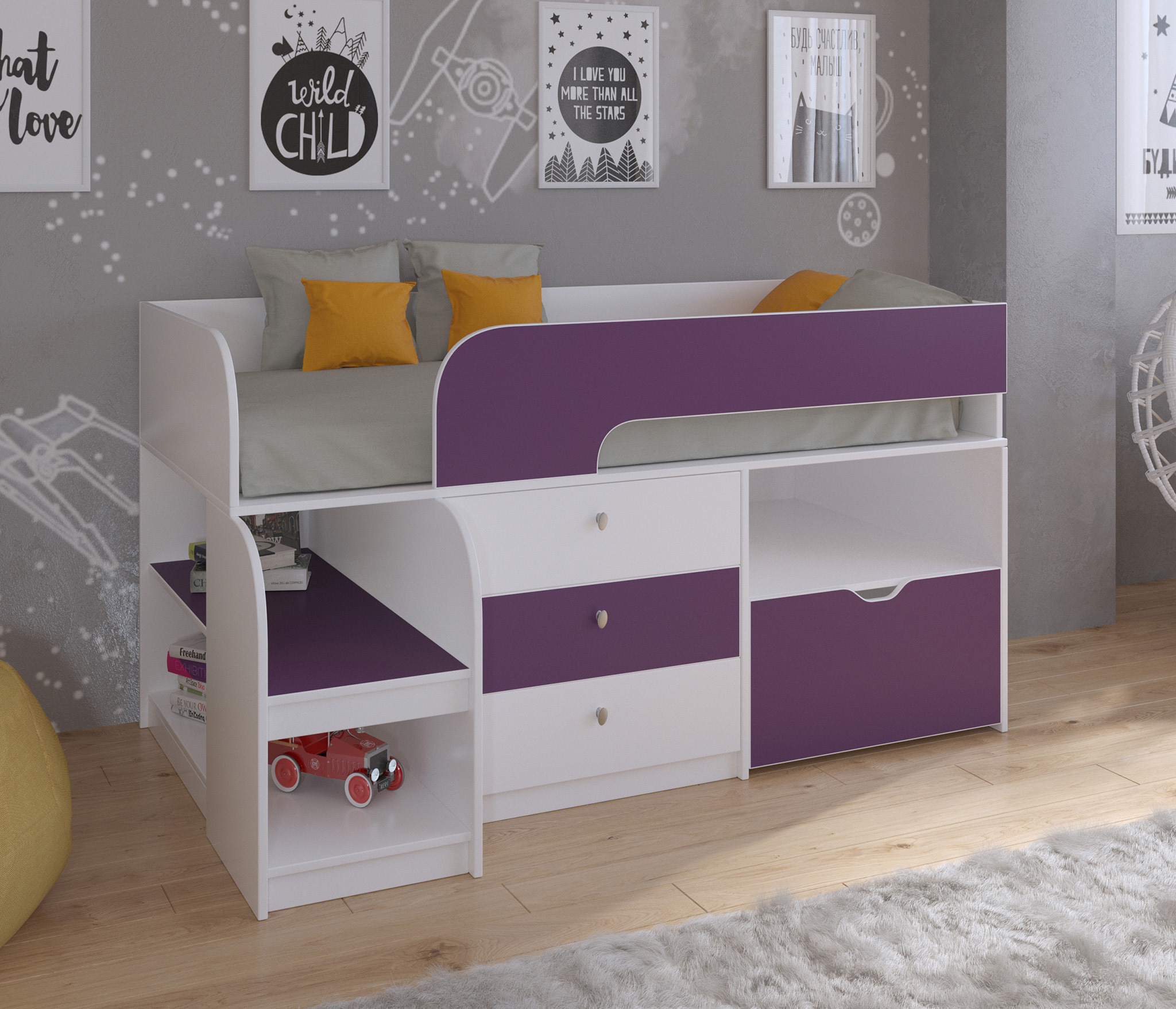 Кровать-чердак Астра 9 V5 Белый                                 (Фиолетовый)
