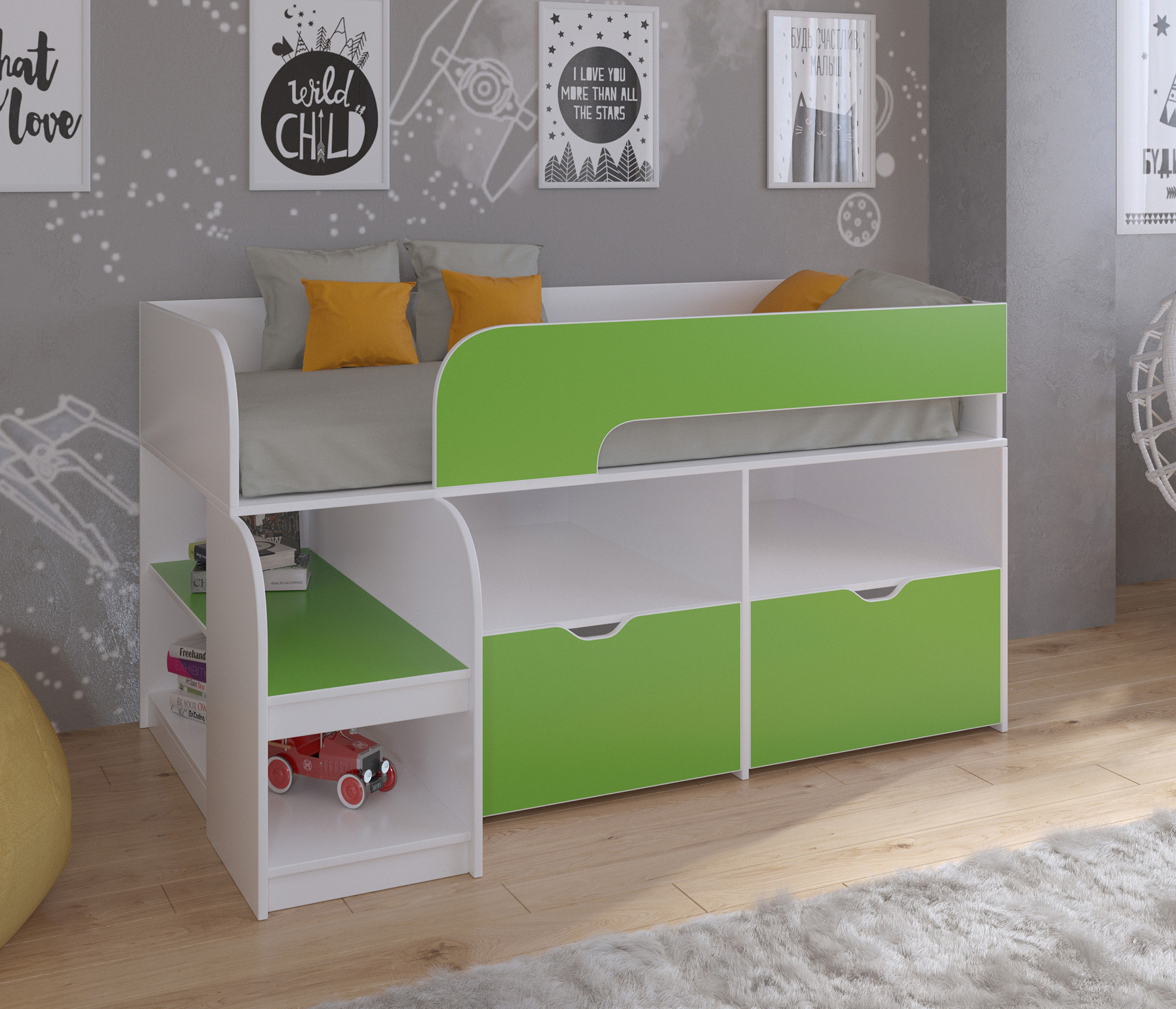 Кровать-чердак Астра 9 V6 Белый                                 (Салатовый)