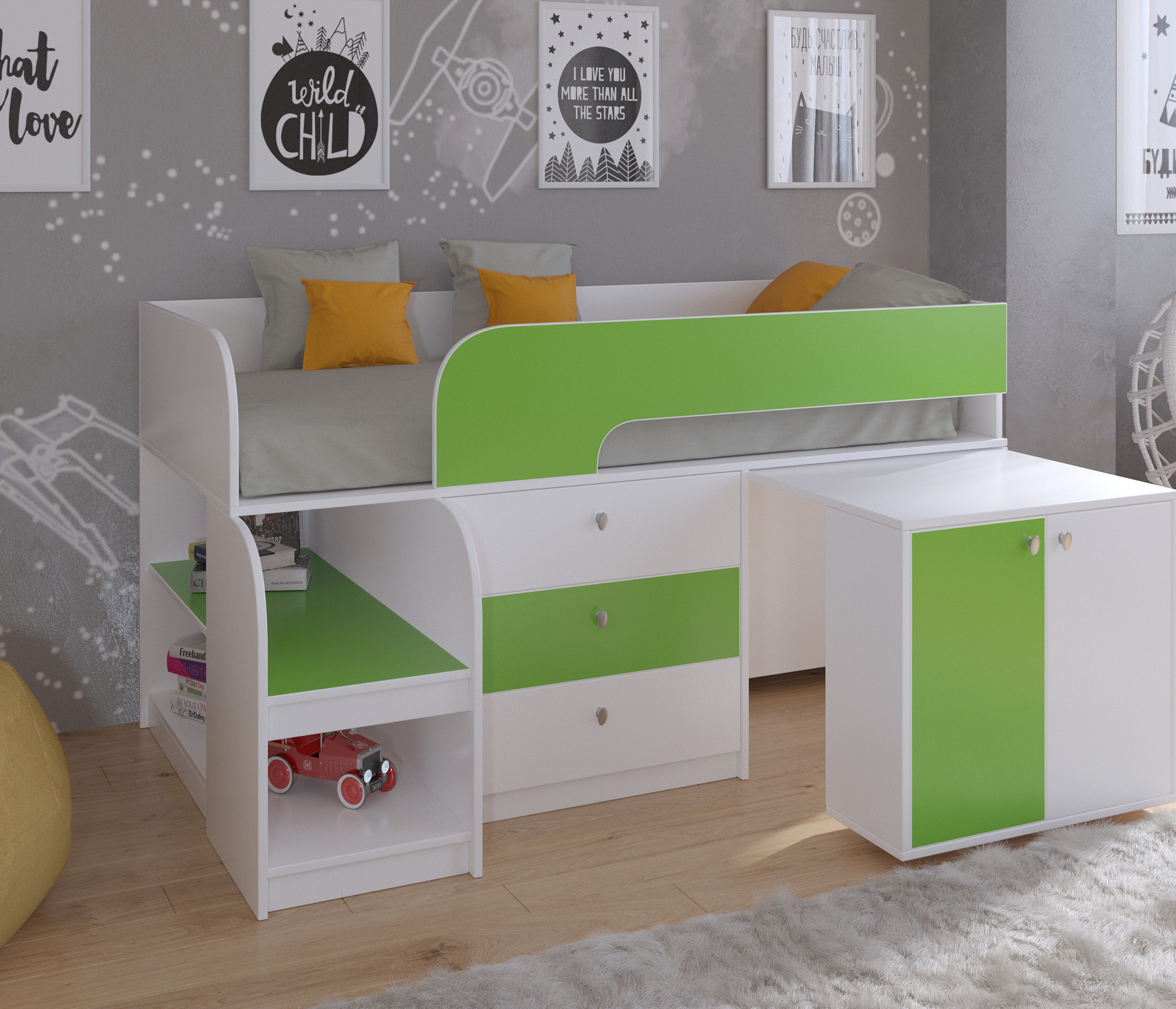 Кровать-чердак Астра 9 V7 Белый (Салатовый)