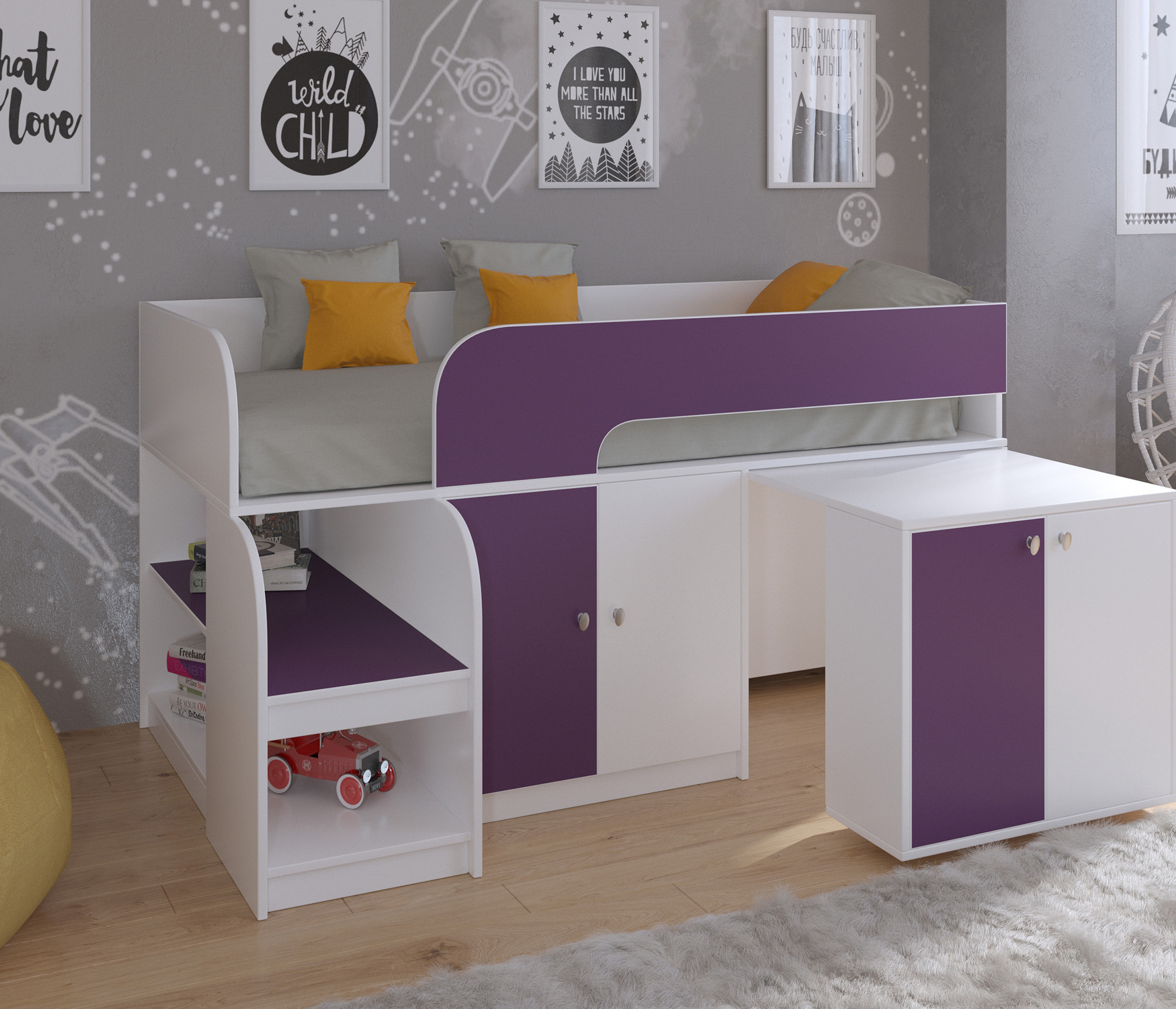Кровать-чердак Астра 9 V8 Белый (Фиолетовый)