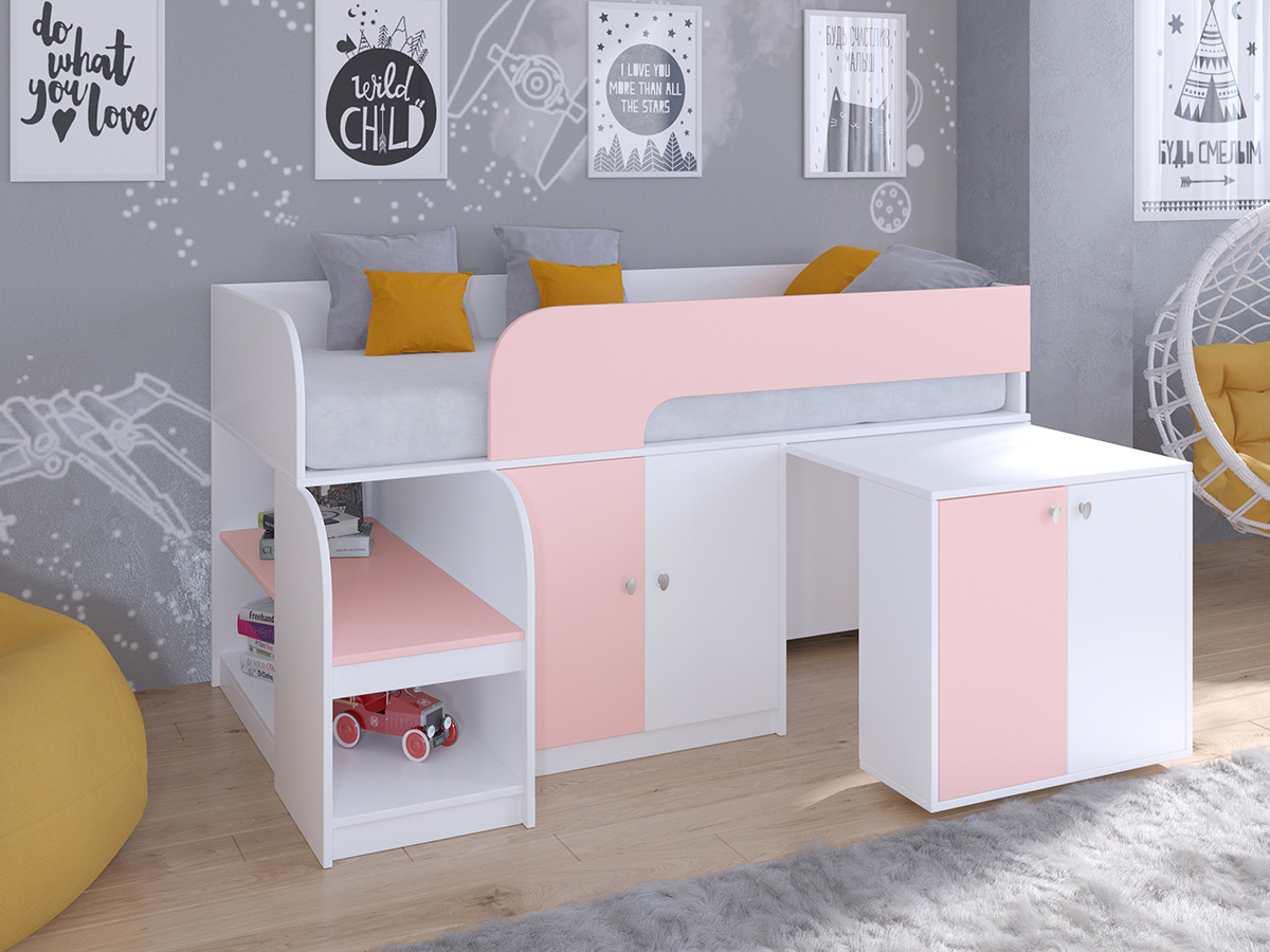 Кровать-чердак Астра 9 V8 Белый (Розовый)
