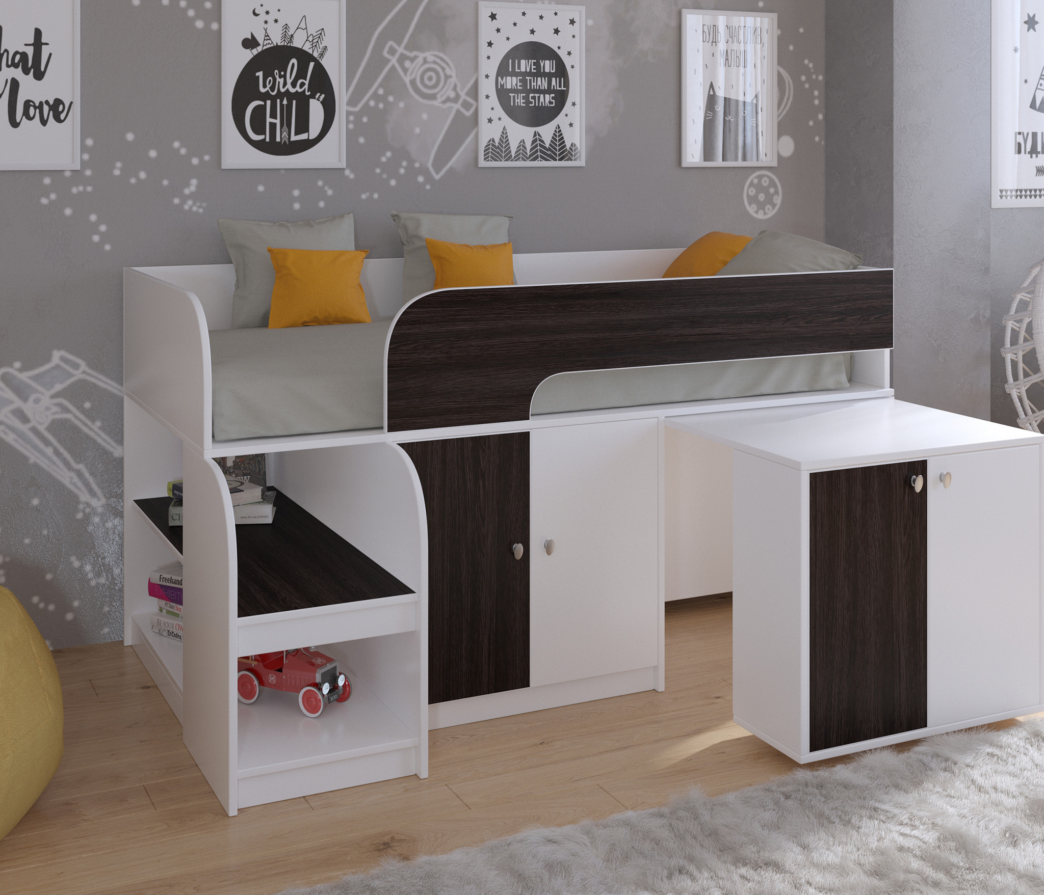 Кровать-чердак Астра 9 V8 Белый (Венге)