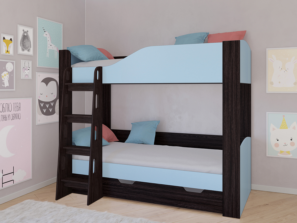 Кровать двухъярусная Астра 2 Венге (Голубой)