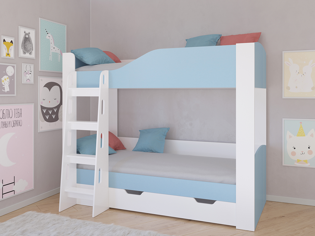 Кровать двухъярусная Астра 2 Белый                                 (Голубой)