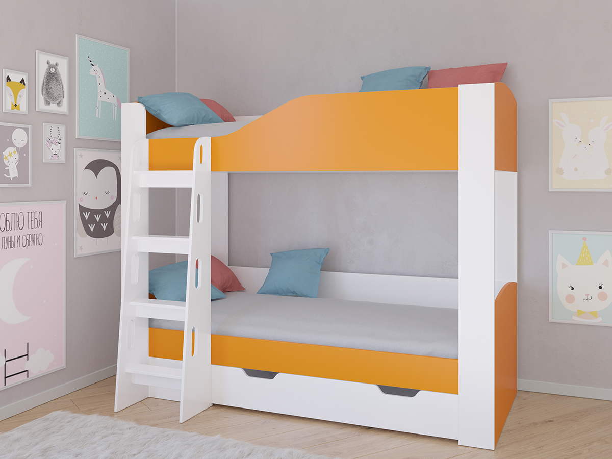 Отзывы о Столплит Кровать двухъярусная Астра 2 Белый Оранжевый