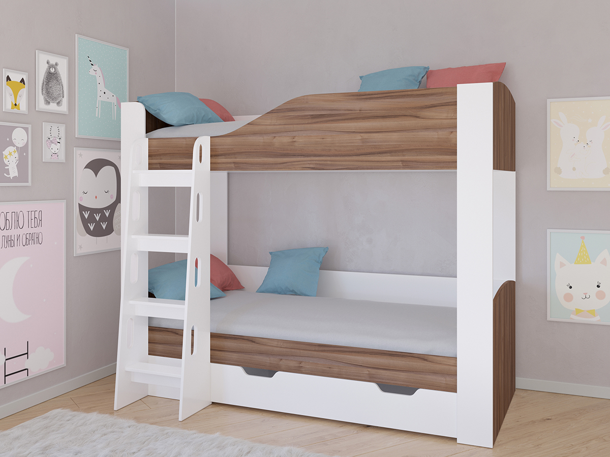 Кровать двухъярусная Астра 2 Белый                                 (Орех)