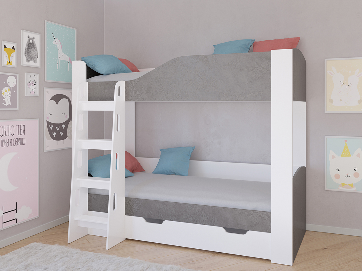Кровать двухъярусная Астра 2 Белый                                 (Серый)