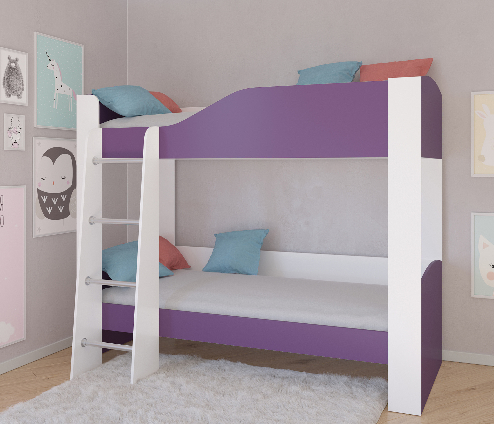 Отзывы о Столплит Кровать двухъярусная Астра 2 без ящика Белый Фиолетовый