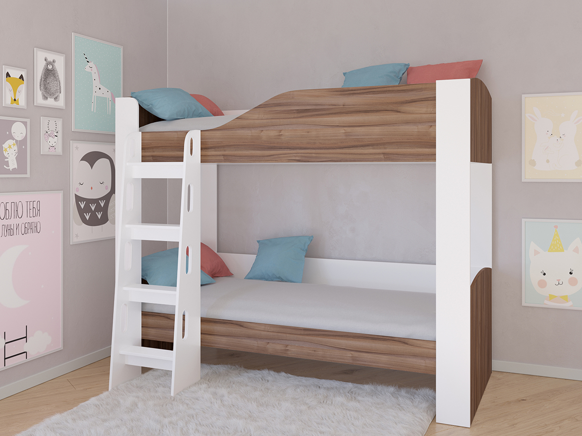 Кровать двухъярусная Астра 2 без ящика Белый                                 (Орех тьеполо)