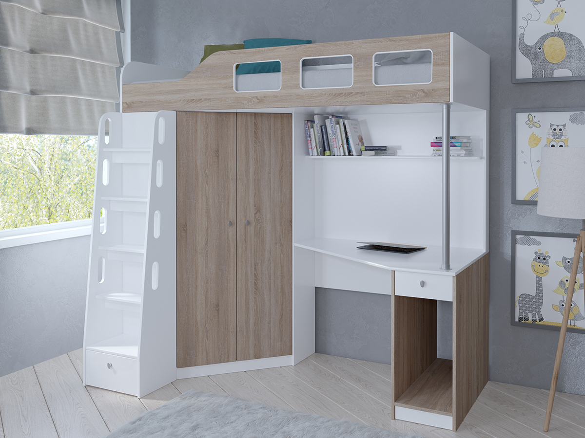 Кровать-чердак Астра 7 Белый (Дуб сонома)