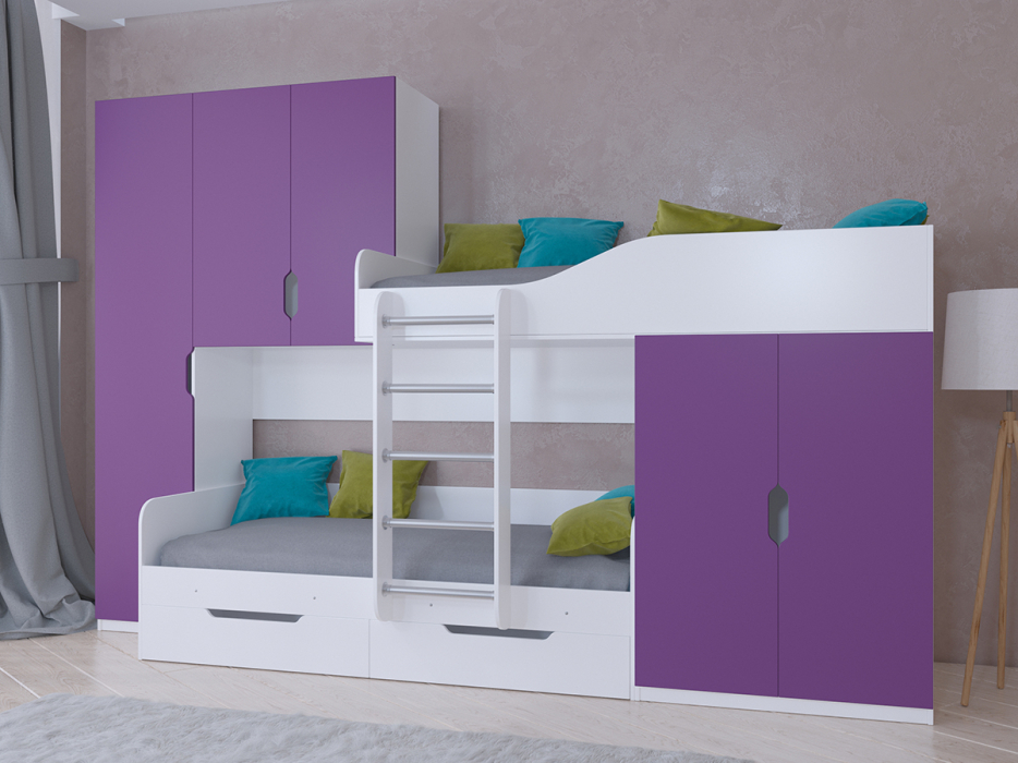 Кровать двухъярусная Лео Белый (Фиолетовый)