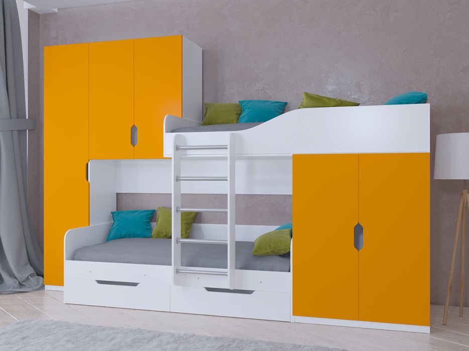 Кровать двухъярусная Лео Белый (Оранжевый)