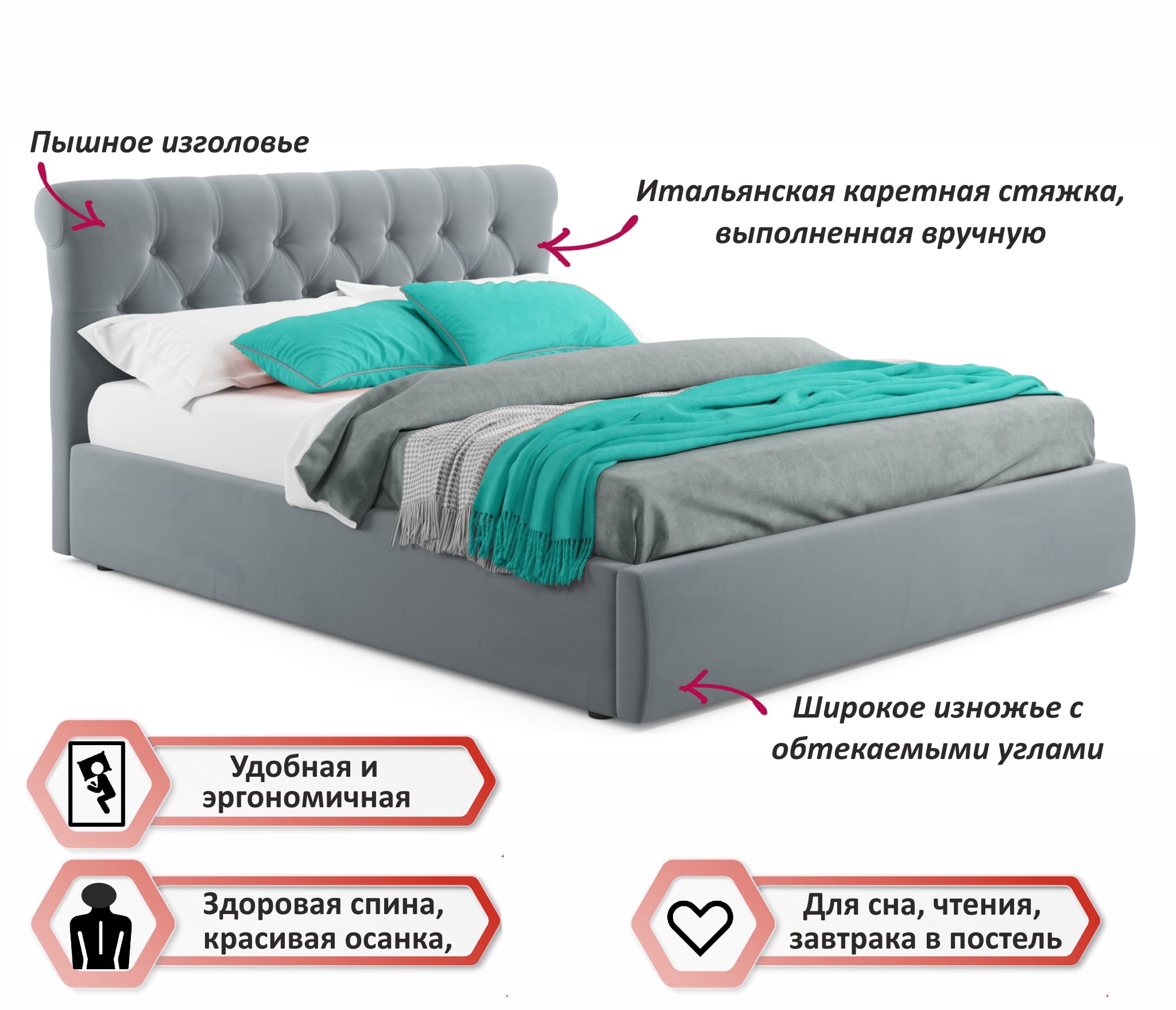 Я сразу поняла, что будет царственная стильная кровать и украшение всего интерьера. Спинка симпатичная. Мягкая, аккуратная, невысокая. В правильно подобранном цвете кровать вообще неповторима, я выбрала именно серый оттенок, больше приглянулась.