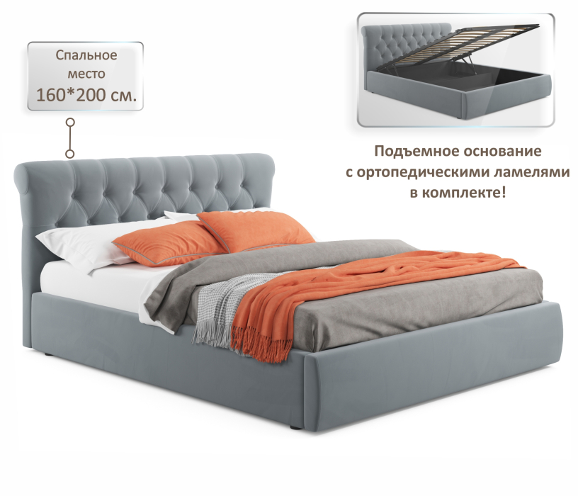 Отзывы о Столплит Мягкая кровать Ameli 1600 с подъемным механизмом Серый