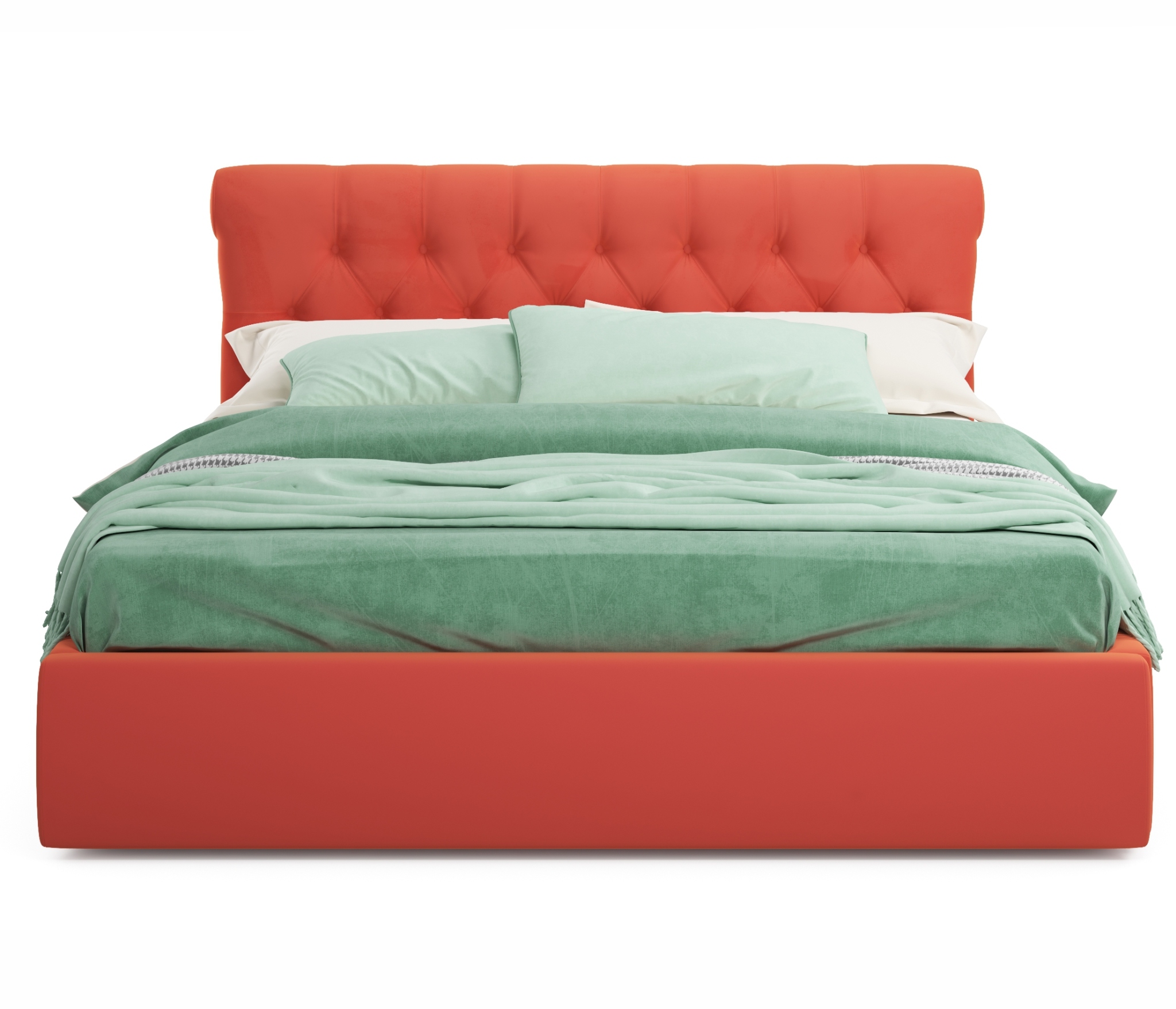 Яркий акцент 2-спальной подъемной кровати Ameli сделан на мягкое высокую рельефную спинку (мягкий подголовник) в стиле «Chester Laurence» с классической «каретной стяжкой», изготовленную вручную мастерами с 20-летним стажем.