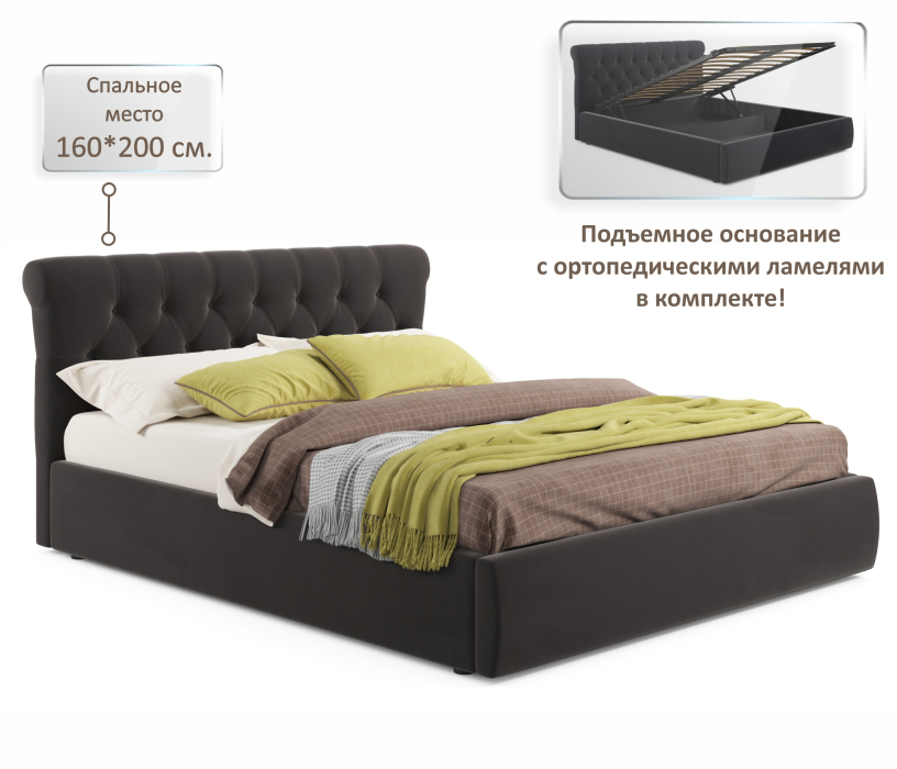Отзывы о Столплит Мягкая кровать Ameli 1600 с подъемным механизмом Шоколадный