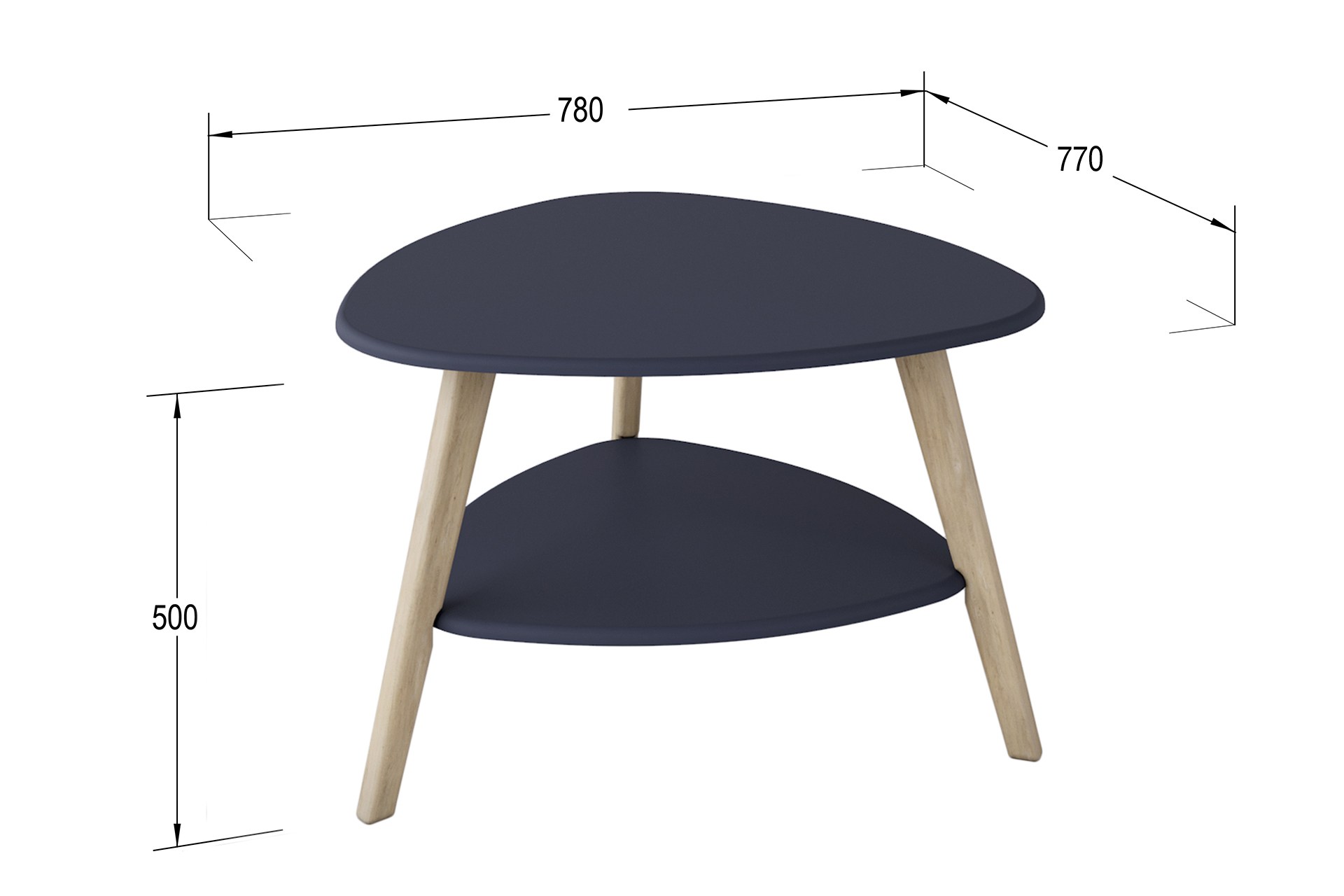 Столик имеет компактные размеры: длина 770 мм, ширина 780 мм, высота 500 мм.
