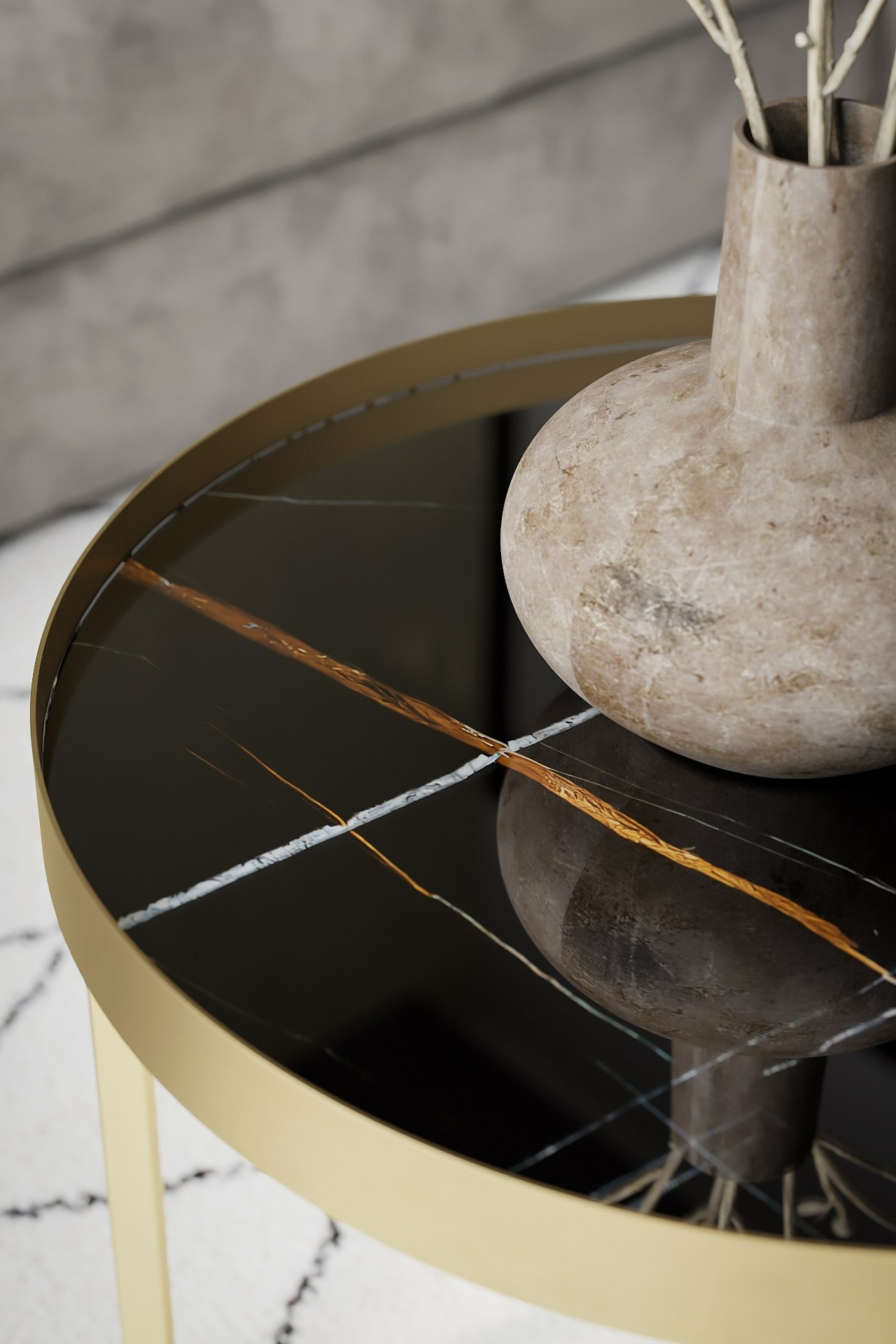 Журнальный столик ""Тайлер"" привлекает своим элегантным оформлением в современном стиле с элементами ар-деко и неоклассики. Прочная конструкция столика полностью изготовлена из металла в цвете черный, хром или золото. Круглая стеклянная столешница с мраморным рисунком смотрится достаточно выразительно в сочетании с подстольем. Оригинальная модель данного журнального столика найдет свое применение как в жилом, так и в офисном помещении. Столик станет главным акцентом сдержанного дизайна.