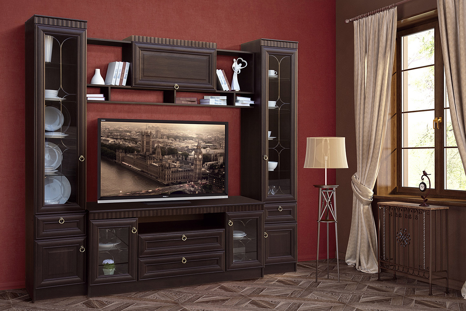 Фасады: МДФ рамочные, декор — "денвер темный", стекло с гравировкой