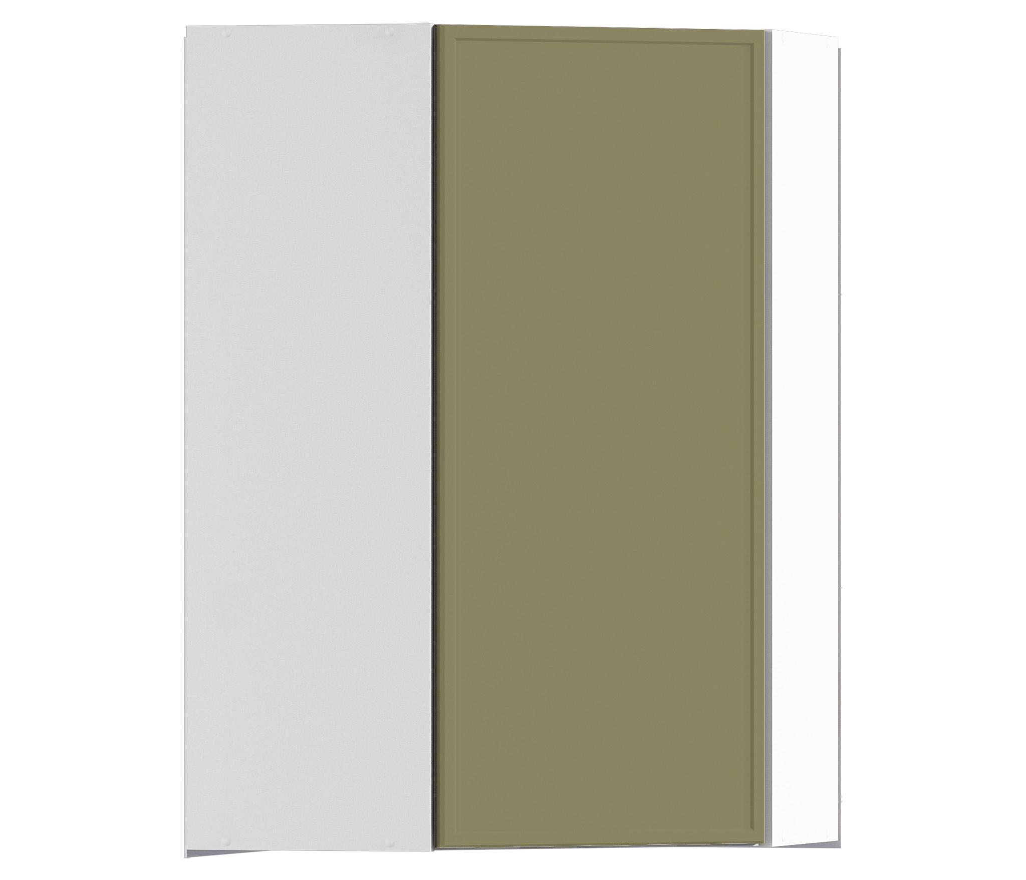 Квадро шкаф навесной угловой 1 дв 60х92 см (Белый/Хаки)