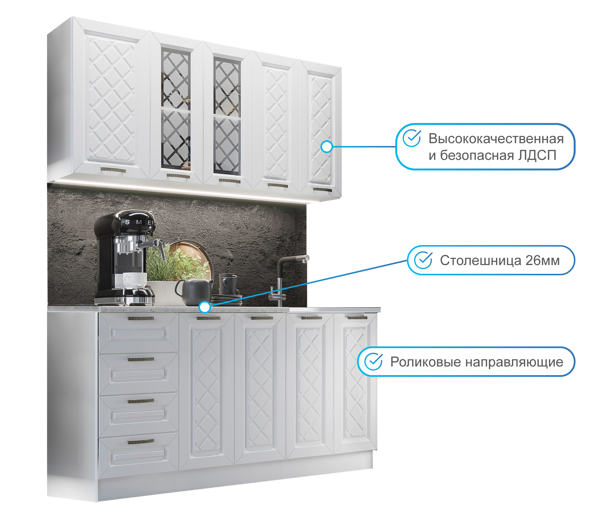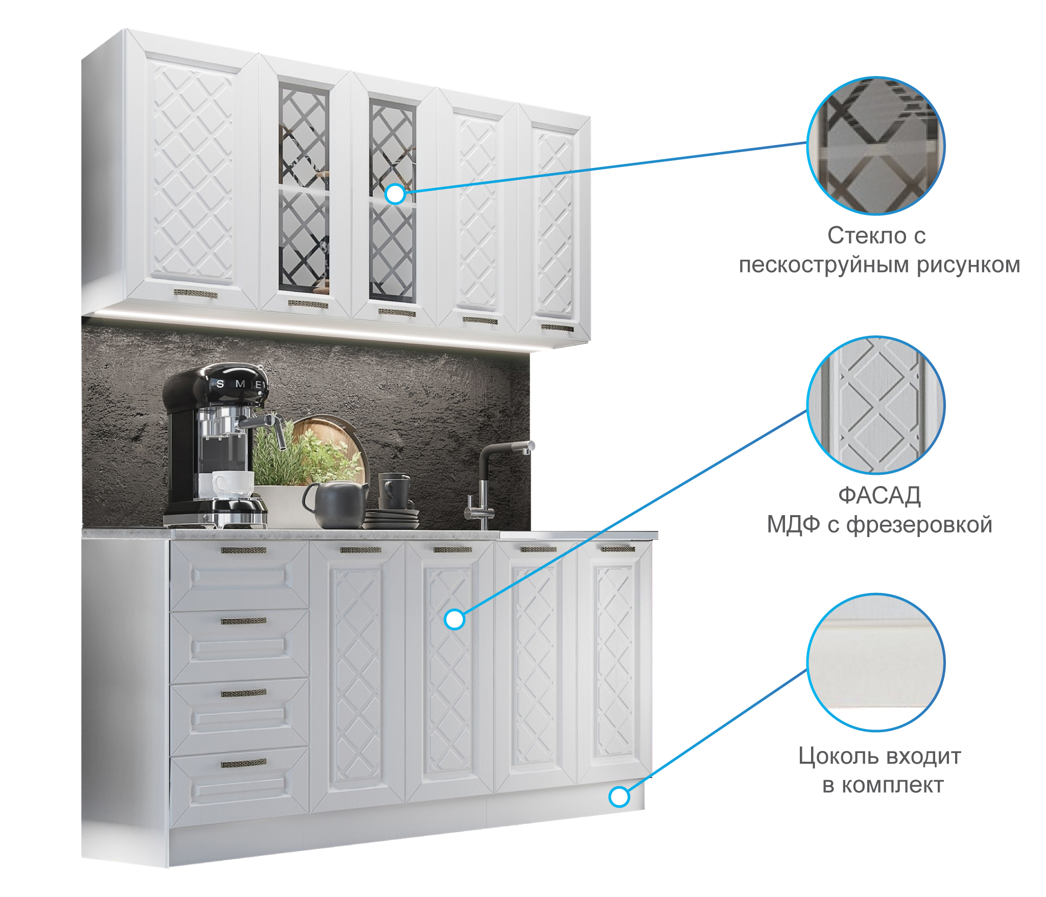 Кухня Агава Акация белая МДФ 1,6 м Код R0000280708