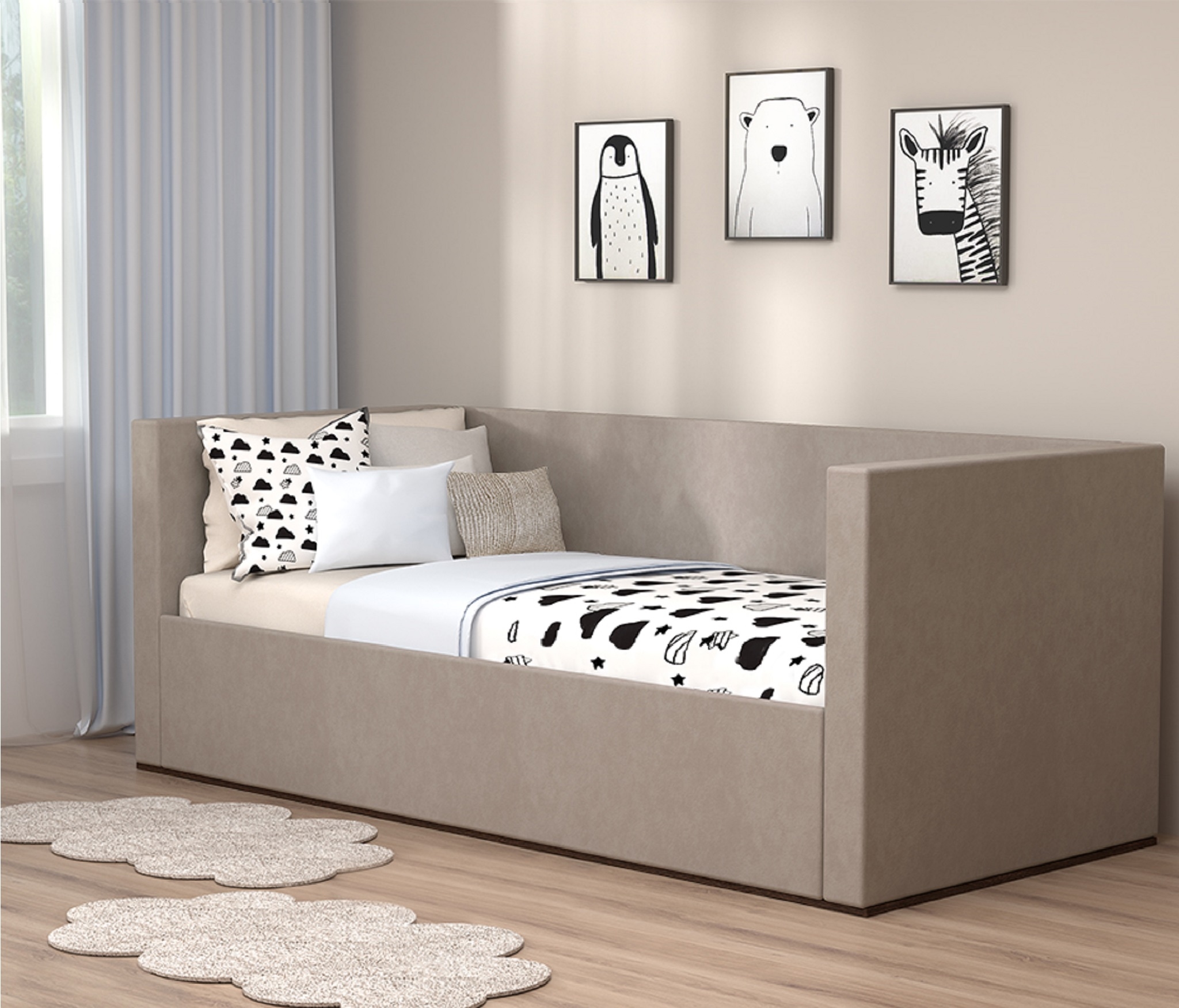Кровать арт. 030 — компактна, проста в эксплуатации, универсальна для подрастающего ребёнка. Ночью она играет роль полноценного спального места, а днём служит предметом интерьера - удобным диваном, на котором можно поиграть, почитать, посмотреть телевизор, пообщаться с приятелями.