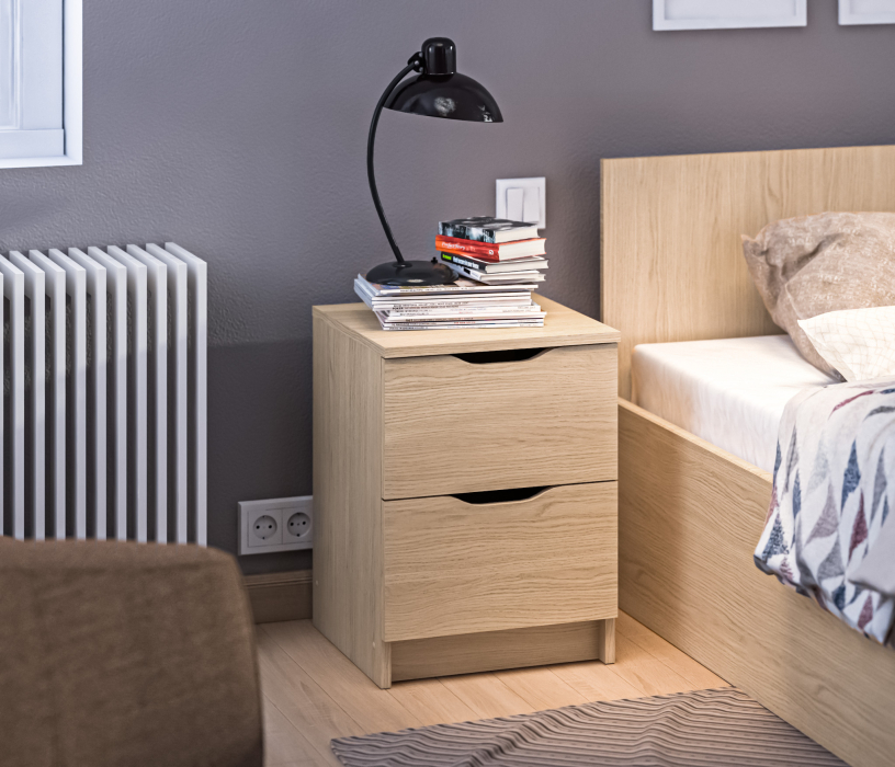 При компактных габаритных размерах – ширина 39 см, высота 53 см и глубина 39 см, тумба довольно вместительная. Под столешницей расположены два выдвижных ящика с прорезными ручками, где можно хранить вещи.