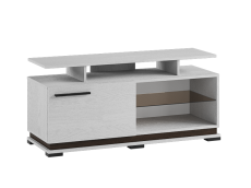 Ни одна современная гостиная не обходится без ТВ-зоны, и наличие тумбы под телевизор тут имеет ключевое значение. Для малогабаритной гостиной будет идеальна тумба МТ-1. Оптимальная ширина, необычная конструкция, сочетание закрытой ниши и открытых полок из ЛДСП и стекла - ключевые преимущества модуля.