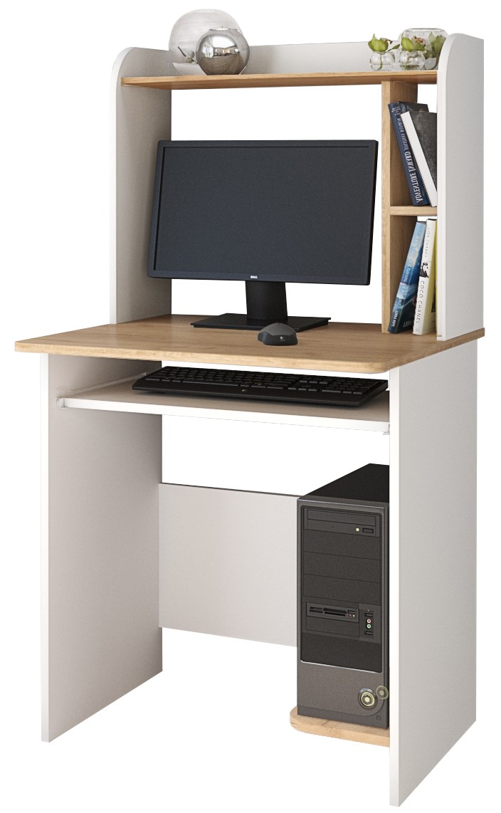 Мечтаете о компактном компьютерном столе с небольшой системой хранения? Стол Грета-1 будет как нельзя кстати! Столешница шириной 70 см позволит организовать рабочую зону даже в малогабаритном помещении и разместить ноутбук или стационарный компьютер. Для установки процессора предусмотрена открытая полка снизу. Выдвижная панель для клавиатуры имеет роликовые направляющие. Опоры стола оснащены пластиковыми подпятниками, которые защищают напольное покрытие от деформации. Модель оборудована функциональной надстройкой с открытыми полками для хранения книг, органайзера или других мелочей, которые необходимо иметь под рукой во время работы.