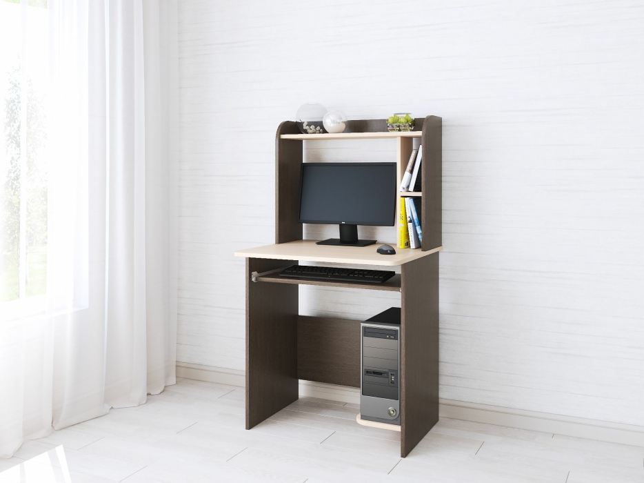 Мечтаете о компактном компьютерном столе с небольшой системой хранения? Стол Грета-1 будет как нельзя кстати! Столешница шириной 70 см позволит организовать рабочую зону даже в малогабаритном помещении и разместить ноутбук или стационарный компьютер. Для установки процессора предусмотрена открытая полка снизу. Выдвижная панель для клавиатуры имеет роликовые направляющие. Опоры стола оснащены пластиковыми подпятниками, которые защищают напольное покрытие от деформации. Модель оборудована функциональной надстройкой с открытыми полками для хранения книг, органайзера или других мелочей, которые необходимо иметь под рукой во время работы.