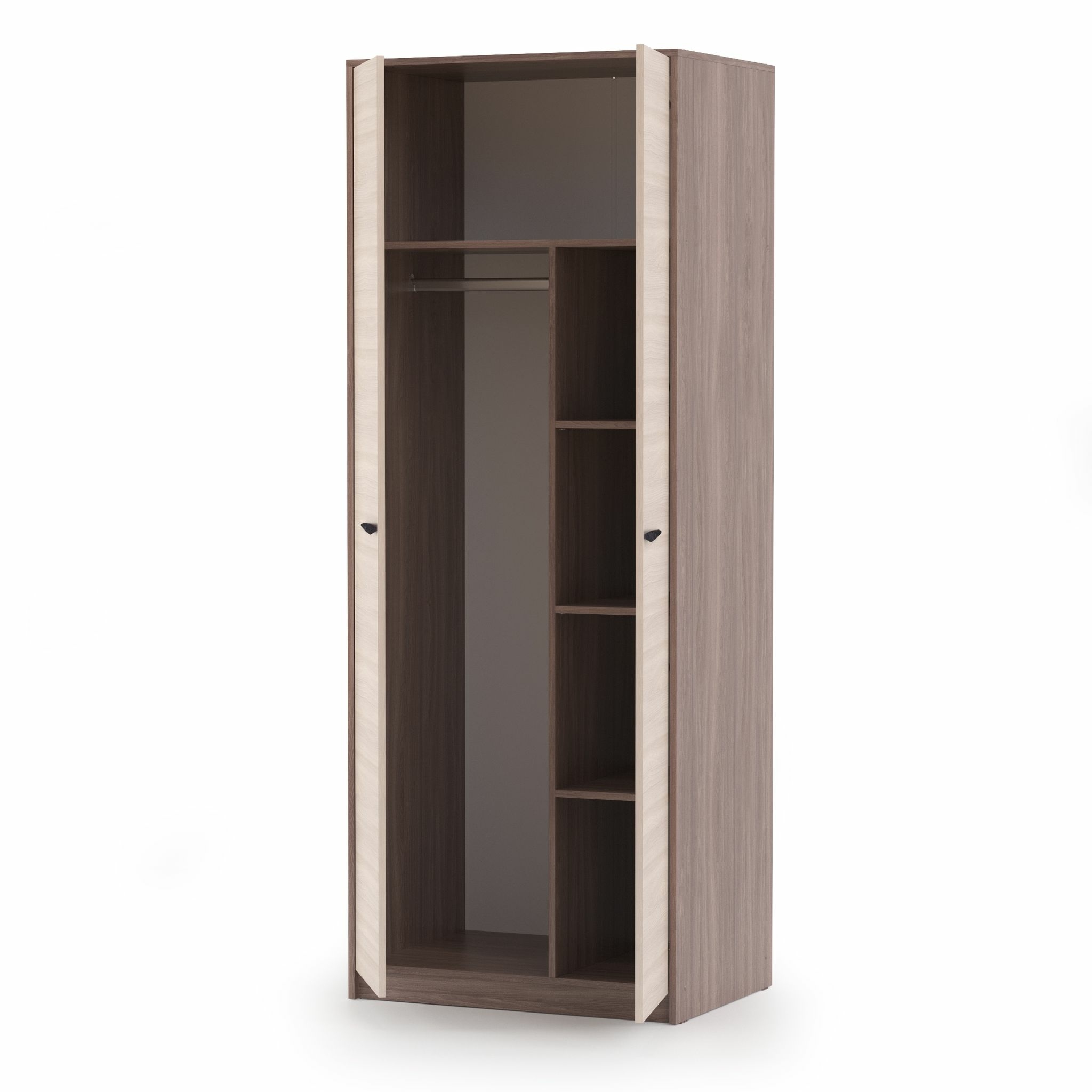 Комплект состоит из:Шкаф-пенал с полками (418х575, h 2110 мм),Шкаф двухстворчатый (803х575, h 2110 мм), Кровать 900 с основанием (960х2040, h 800 мм, спальное место 900х2000 мм), Полка навесная закрытая (1187х269, h 404 мм).