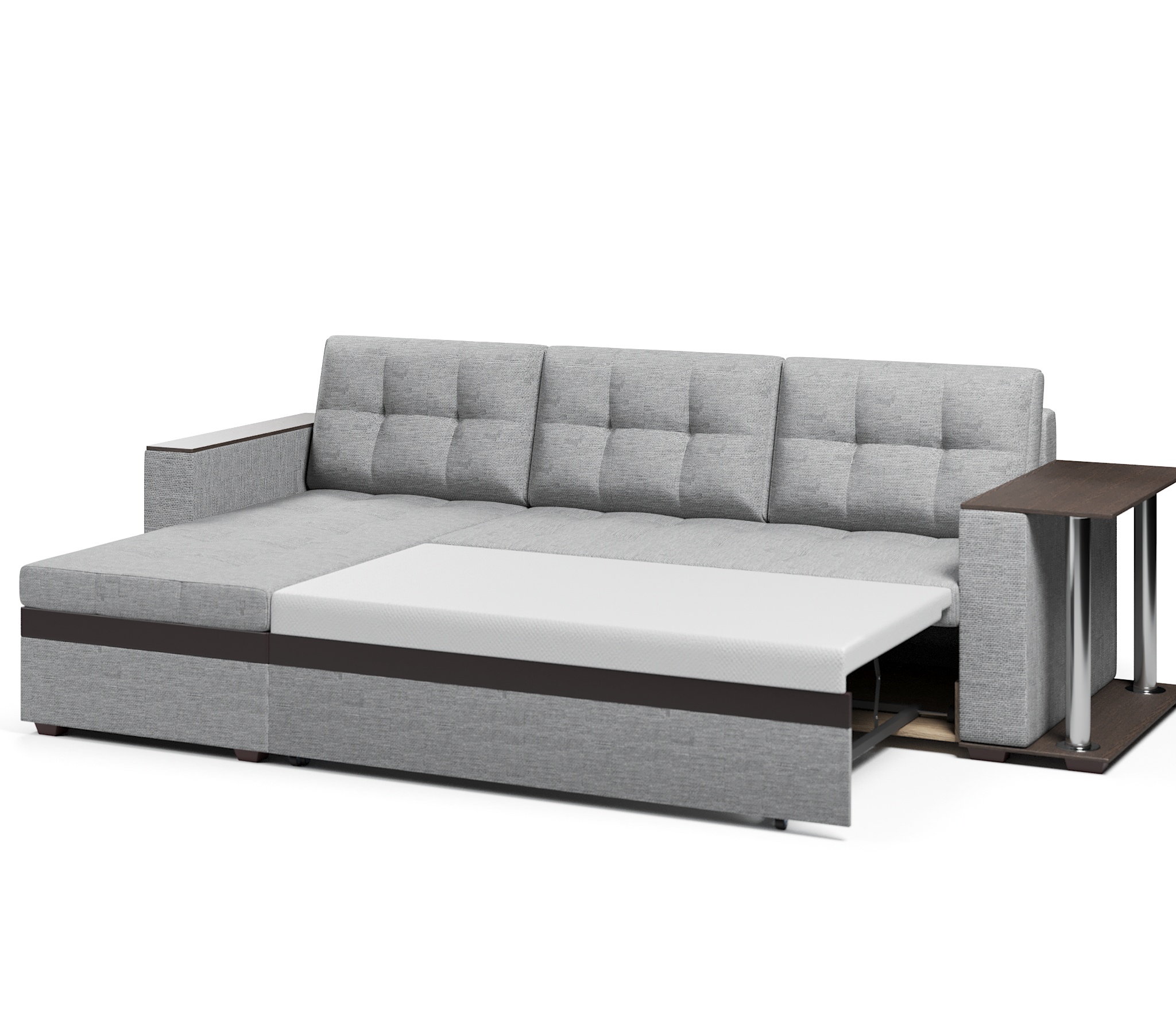 Отзывы о Столплит Диван-кровать угловой Атланта со столом дельфин,рогожка+экокожа Серый
