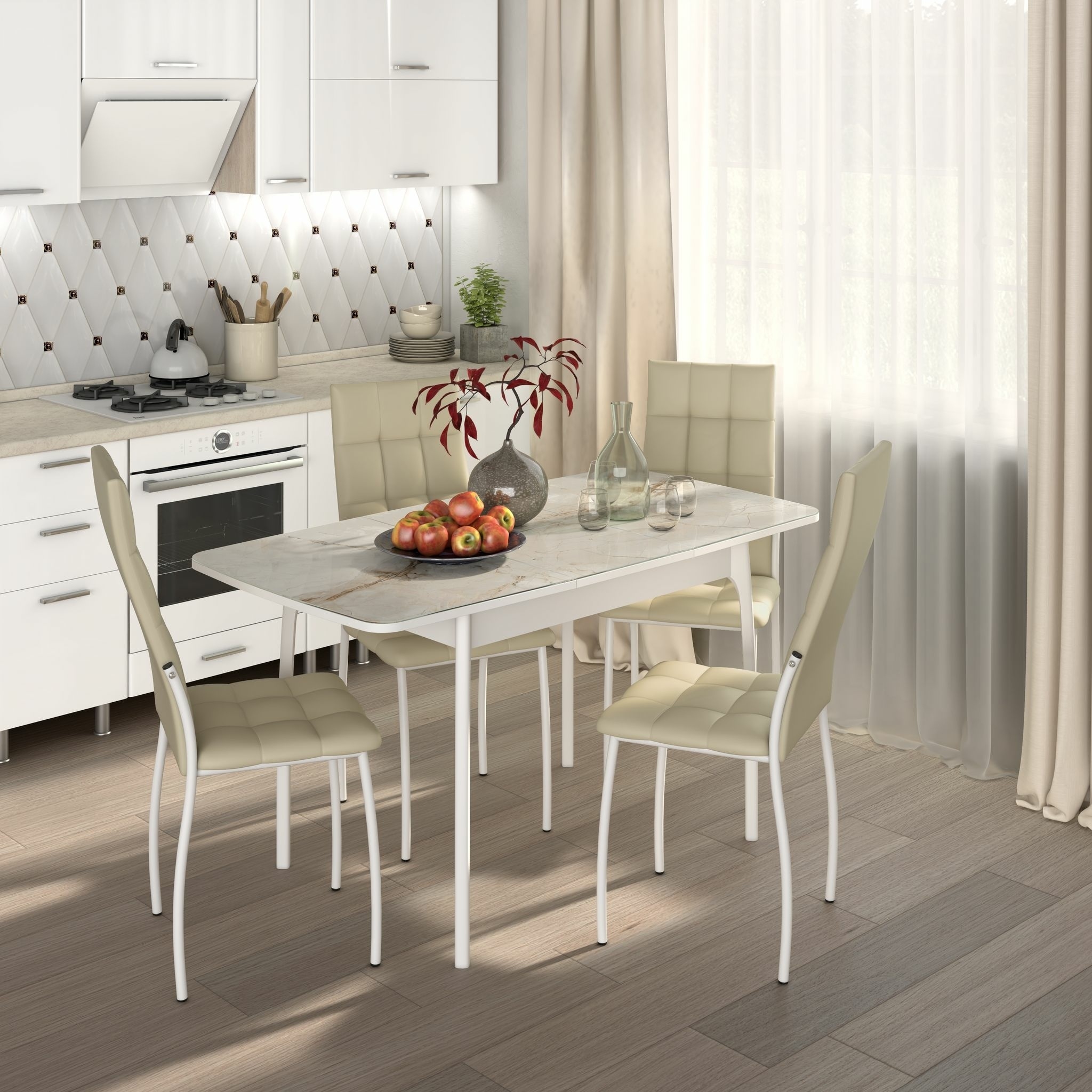 Стулья Волна 4шт. Каркас белый/ экокожа барнео крем